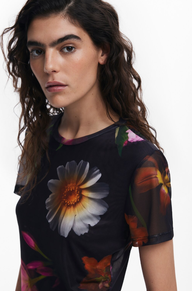 Desigual Des Moines t-shirt, floral short sleeve mesh