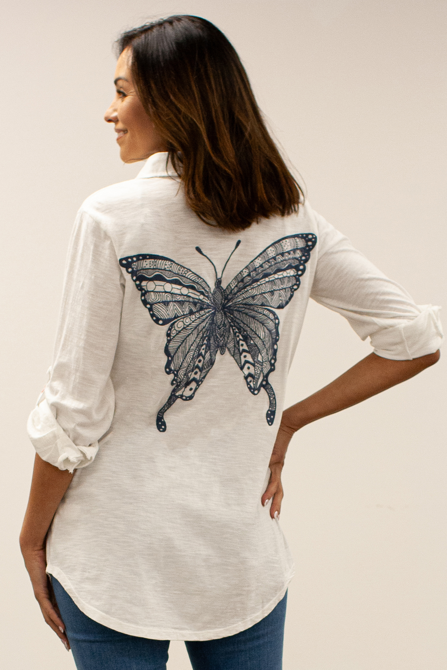 Caite Monroe shirt, embroidered butterfly SALE Size M