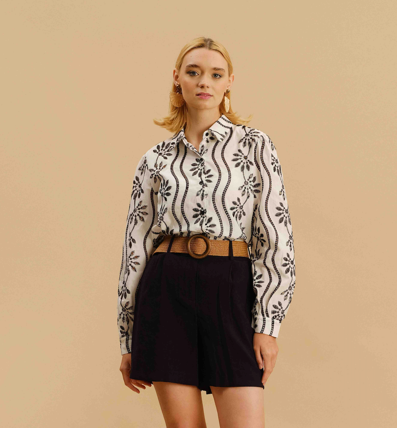 Product details: button front, shirt collar, long sleeves with button cuffs, below hip length on most