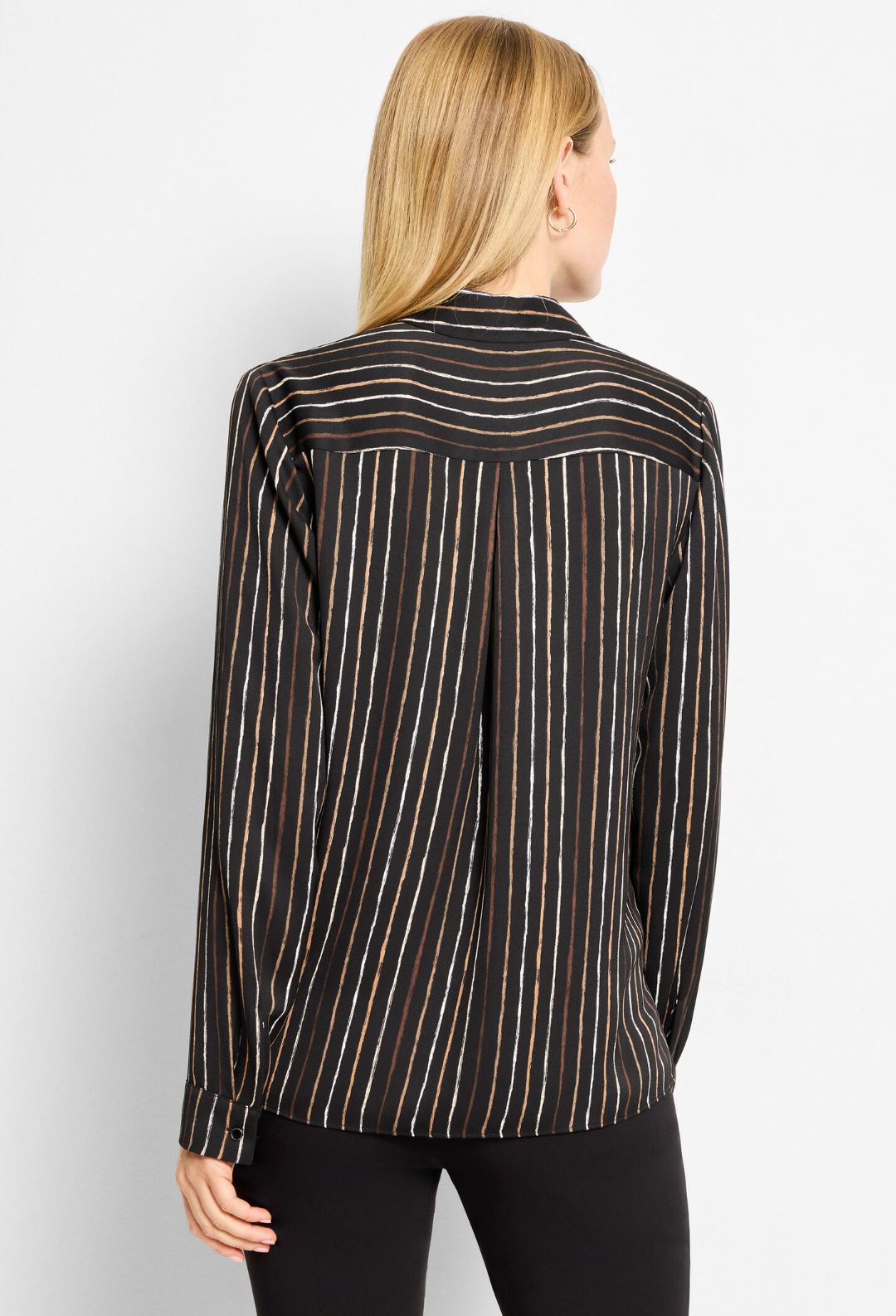 Perfect for big days at the office, sophisticated going-out looks, or as a casual weekend mainstay. The reverse striping on the chest pockets breaks up the pattern (and shows attention to detail) while the satin chiffon fabric delivers a polished look and all-day comfort.