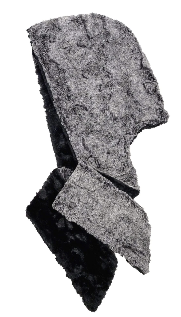 Hoody scarves, or snoods, are great to wear with a sweater or a coat without a hood. These scarves are very chic and comfortable. Hoody scarves can be reversed and are available in solid or two-tone faux fur combinations.