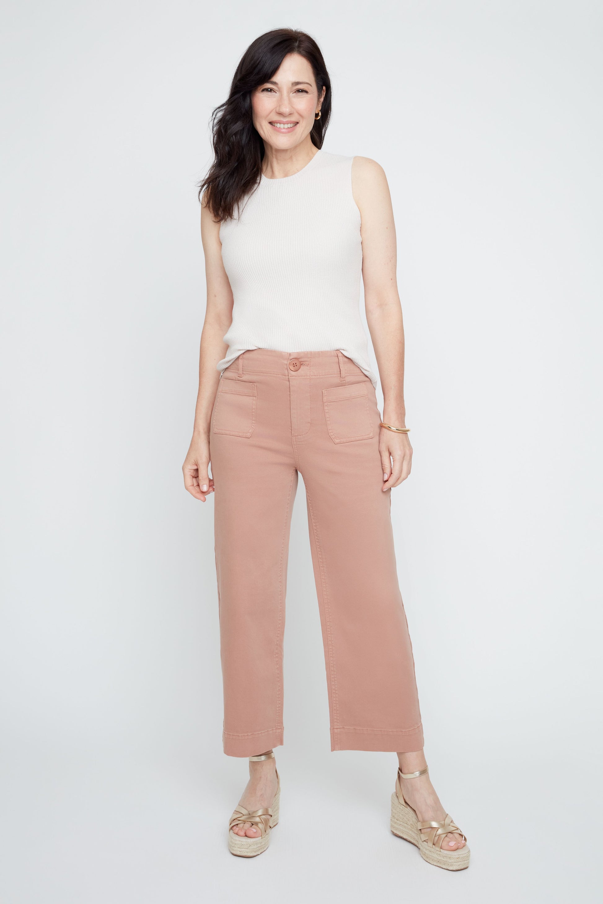 Product features: wide leg, cropped, front and back patch pockets, belt loops, wide bottom hem