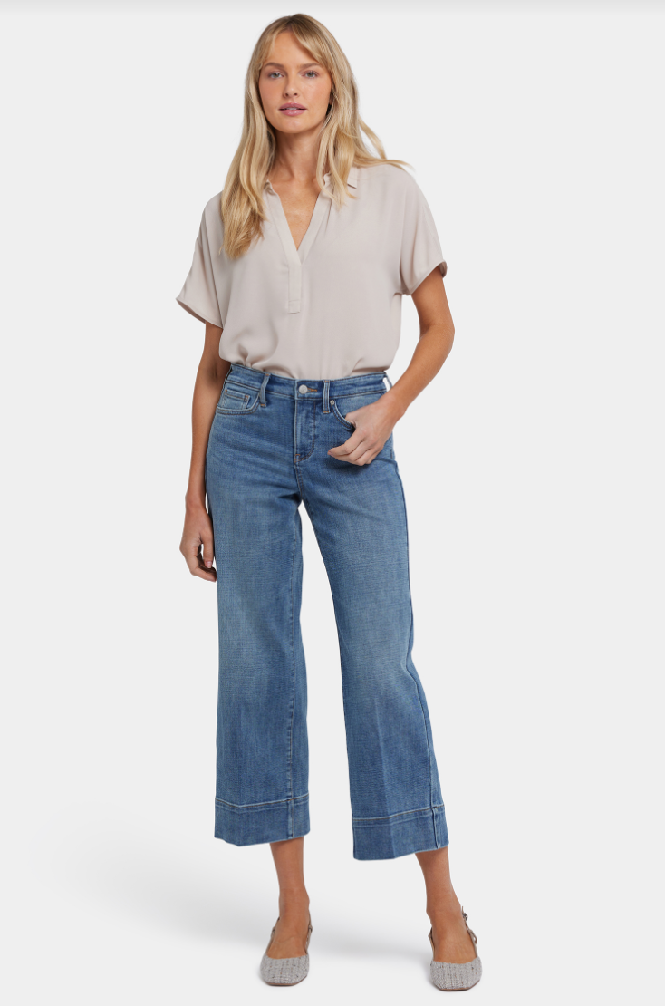 Con este fin, todos los jeans NYDJ están hechos con tecnología Lift Tuck®, un panel adelgazante patentado con un diseño cruzado patentado para aplanarse en la parte delantera y una construcción que contornea las curvas para aplanar las curvas en la parte posterior, para que te veas, sientas y usa una talla más pequeña.