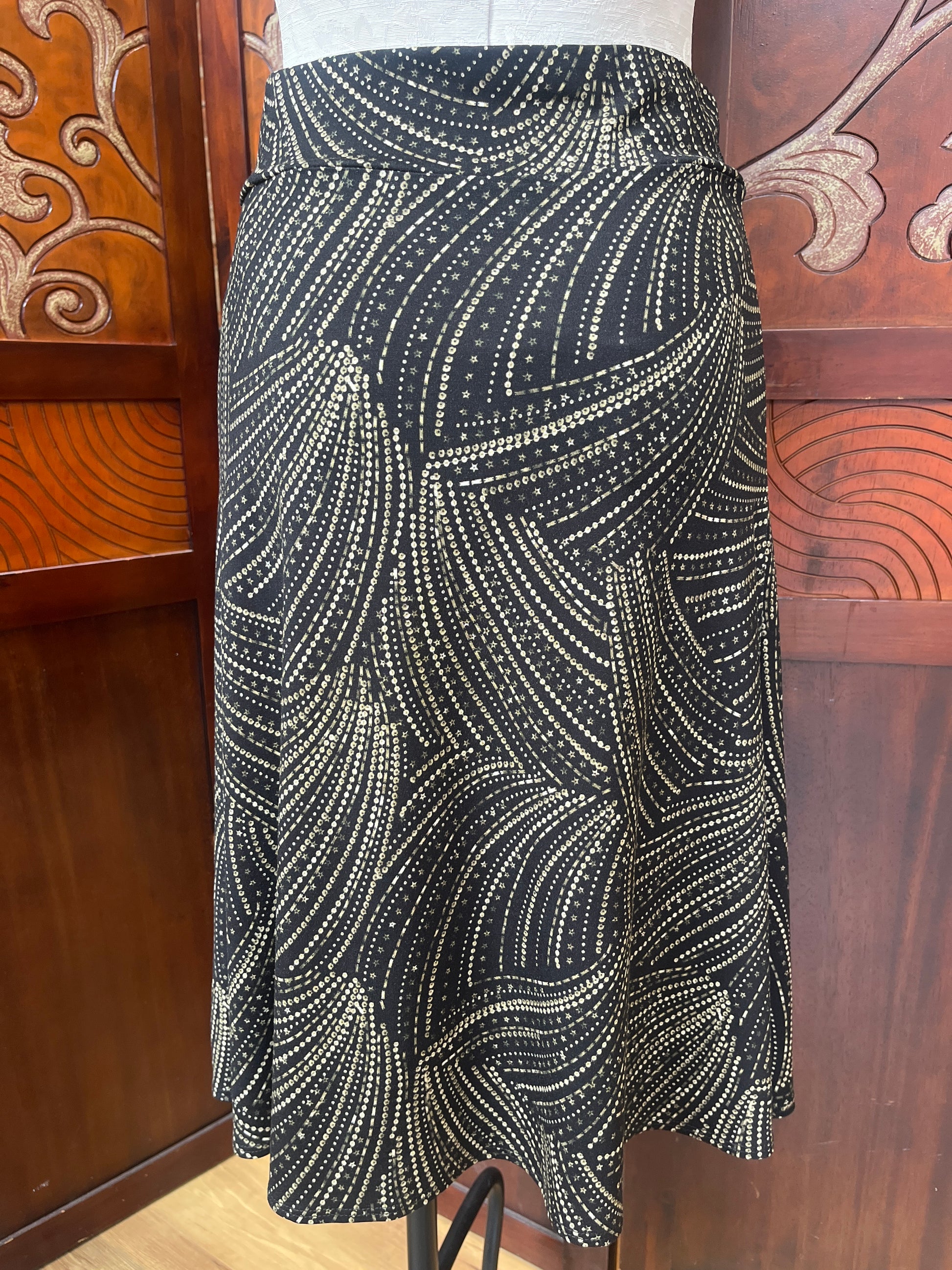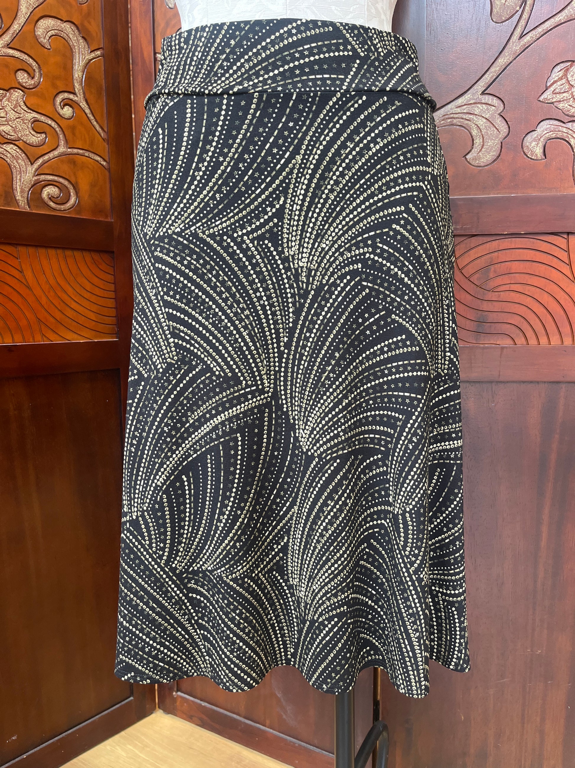 La falda Angela queda genial con una camiseta para días informales, o se puede combinar con un top elegante y zapatos para eventos más formales. Por lo general, llega justo debajo de la rodilla, dependiendo de su altura (mide aproximadamente 26 pulgadas desde la cintura hasta el dobladillo en una talla mediana). Tiene el mismo largo que la falda Flappy, pero sin los paneles.