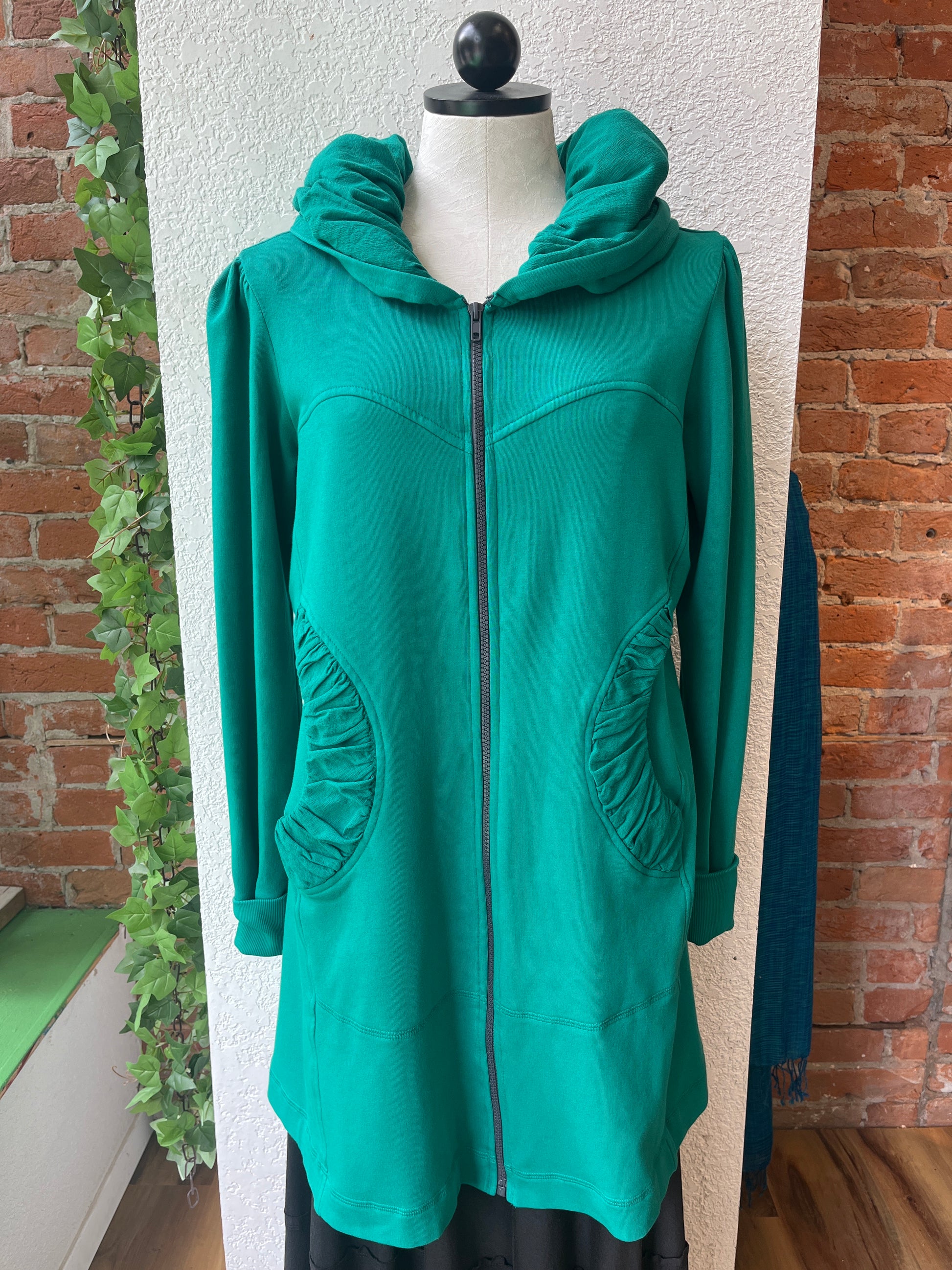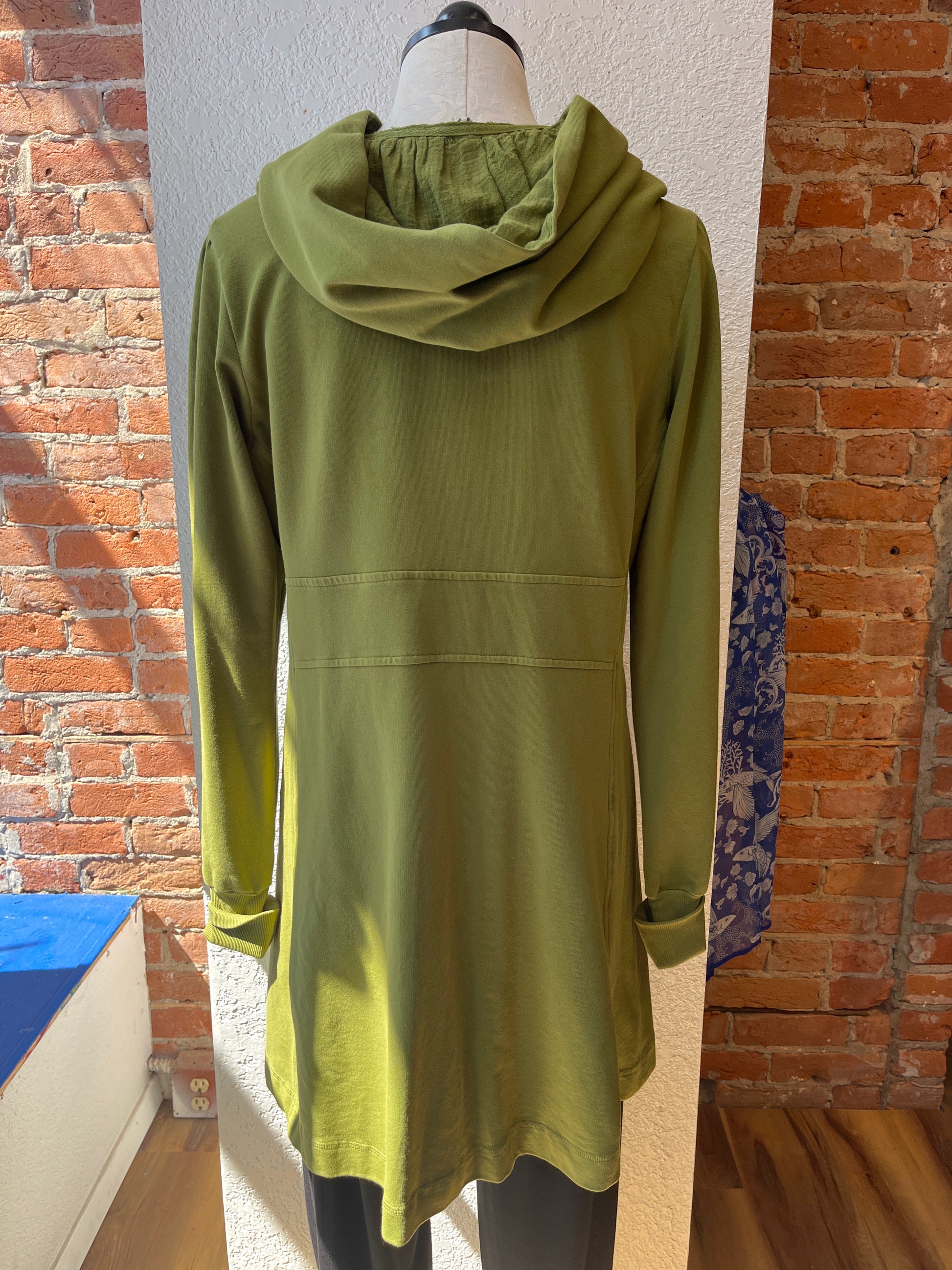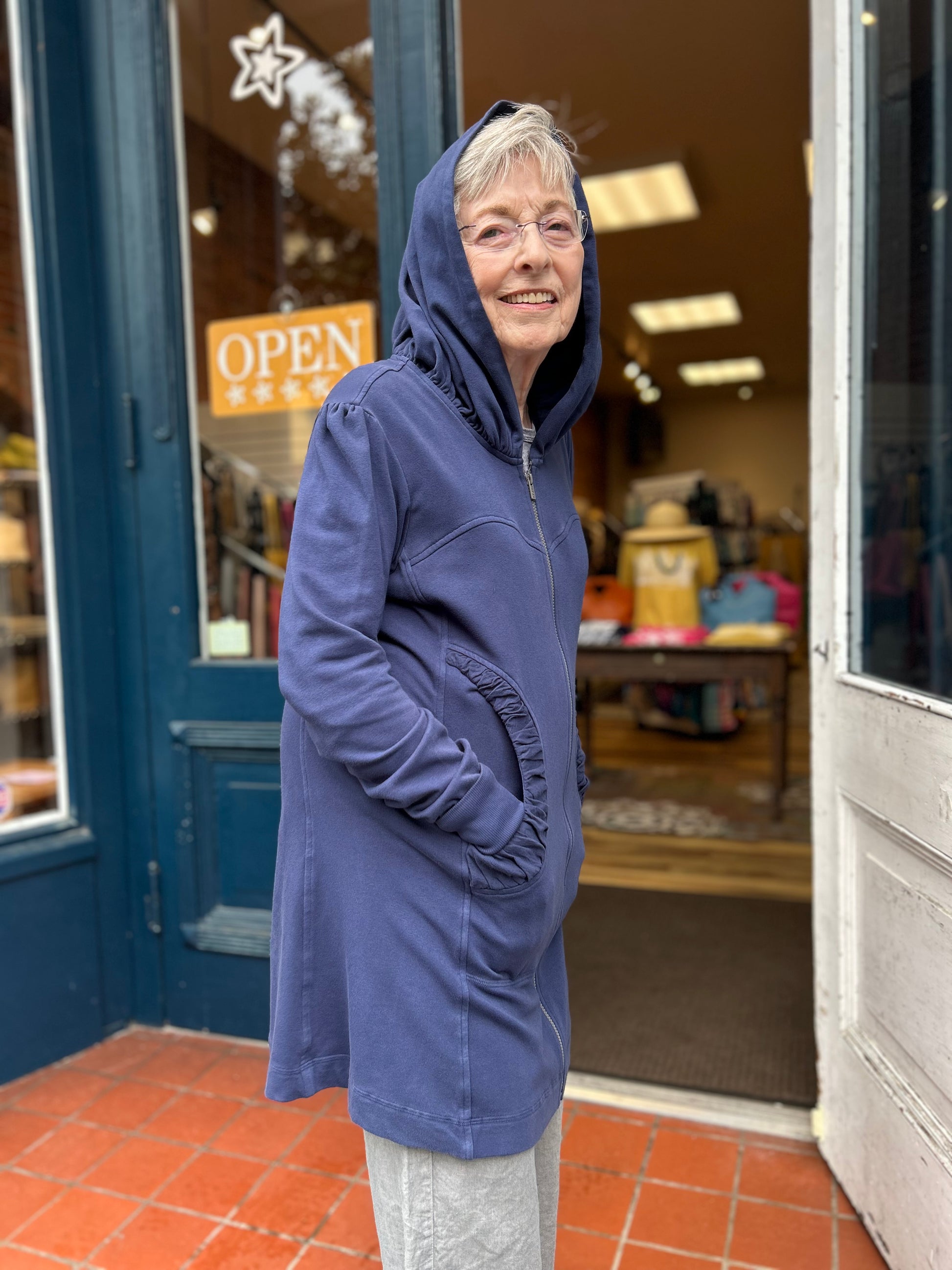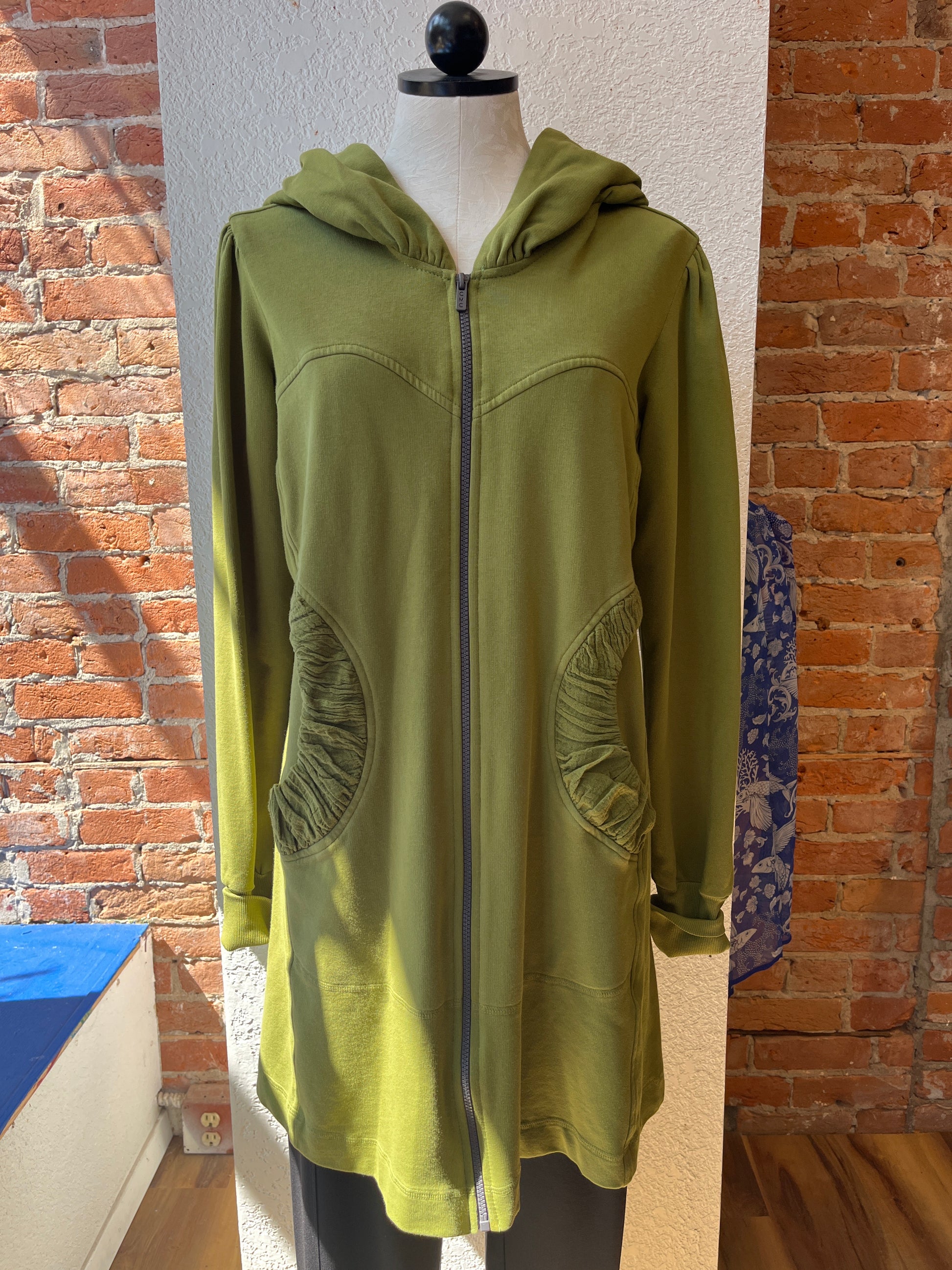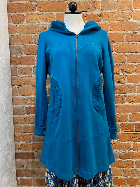 While we have a lot of CMC clothing available in our store, the most popular by far is our stylish hoodie. It’s the perfect year-round layering item over jeans, pants, skirts, or dresses--and can be zipped and worn as a tunic as well! Long, cuffed sleeves, deep pockets, and a nicely shaped silhouette will make this your favorite item for everyday wear. Check out its sister, the CMC hoodie jacket, short zip too!
