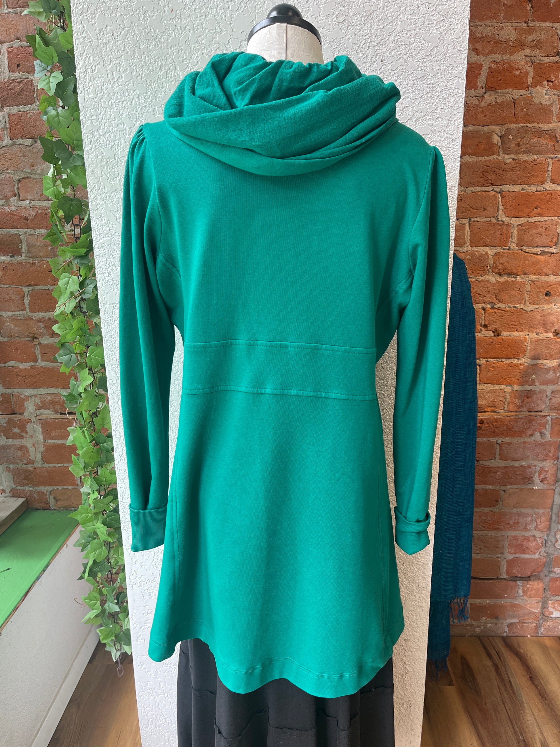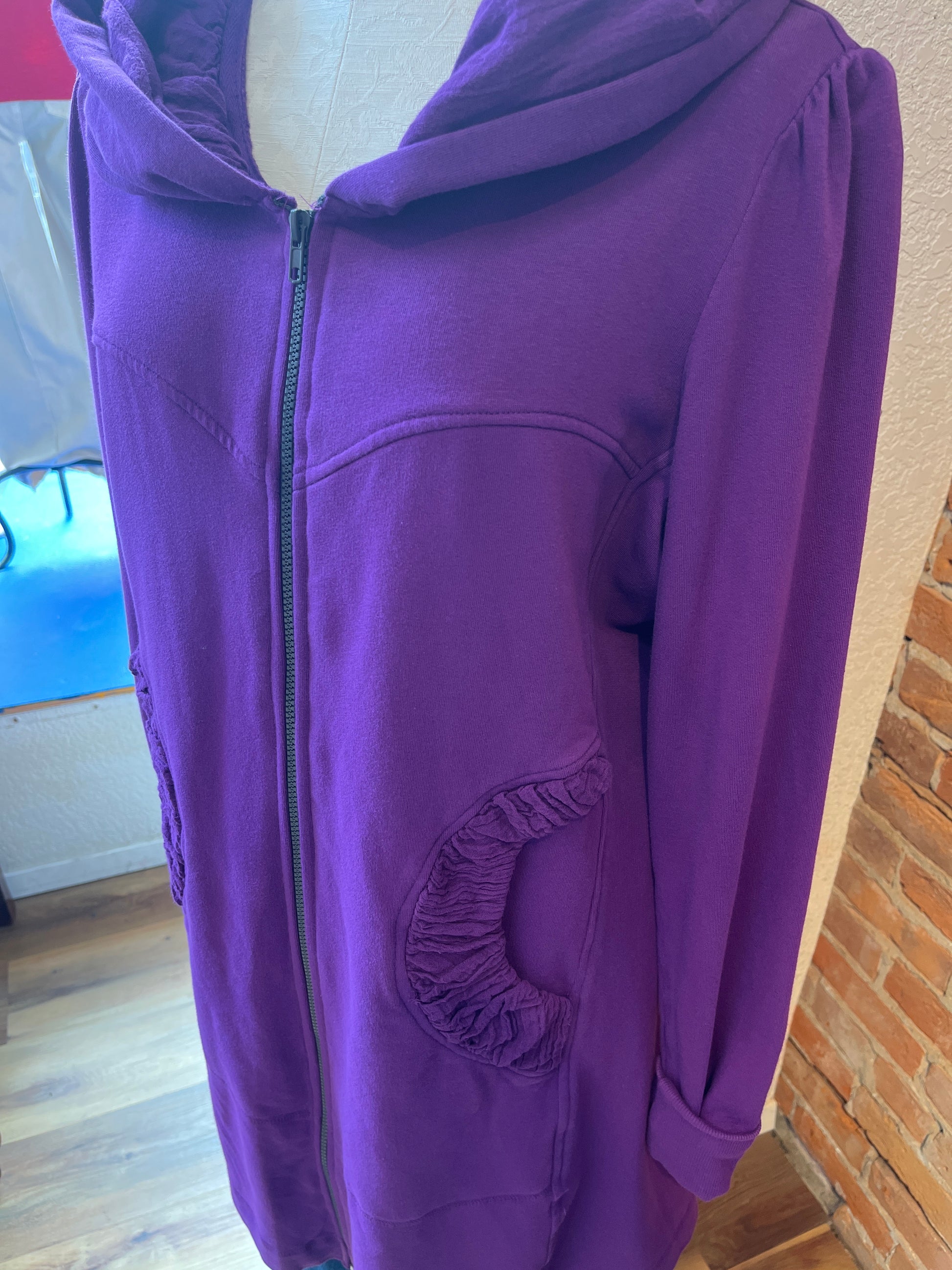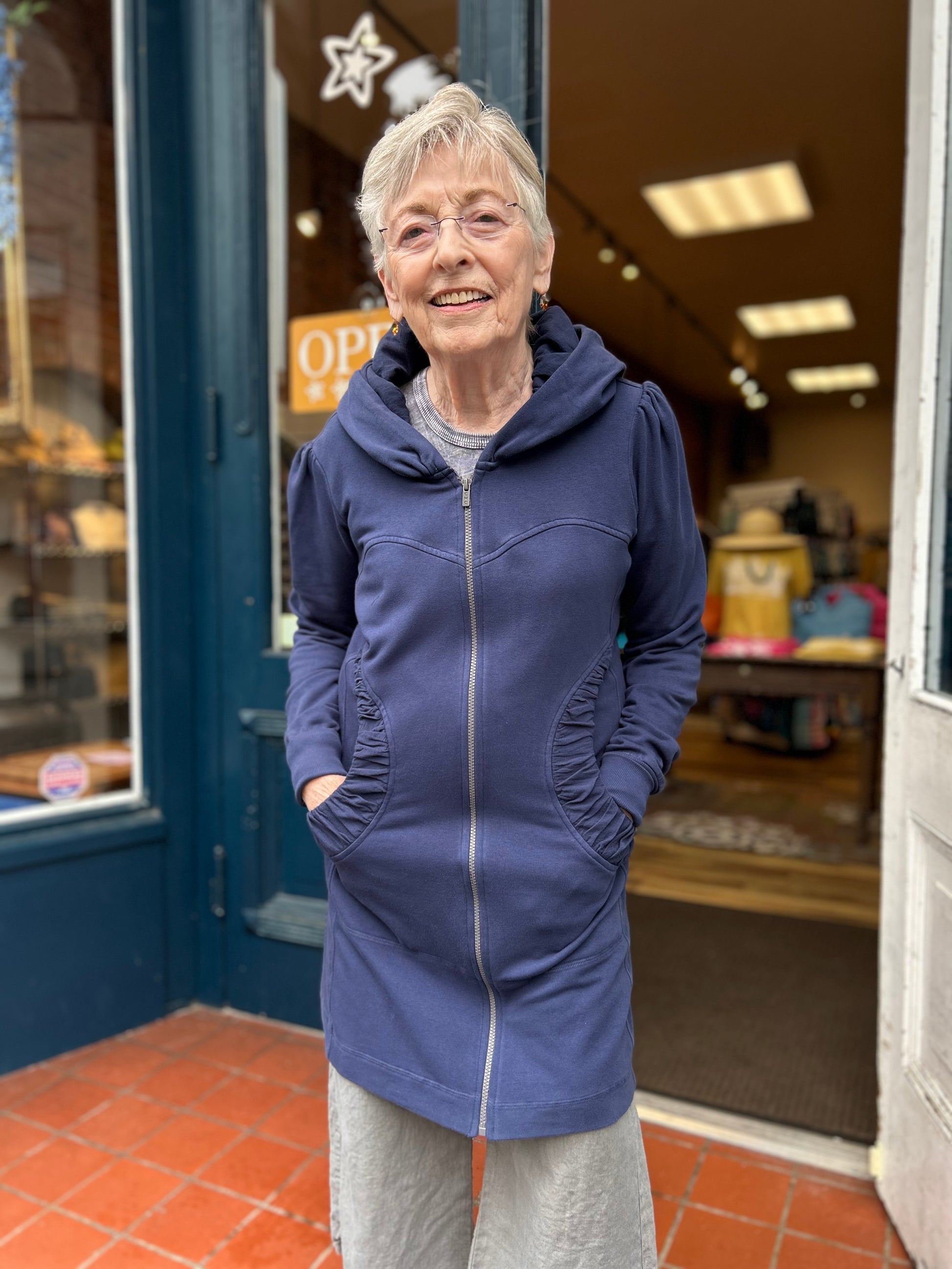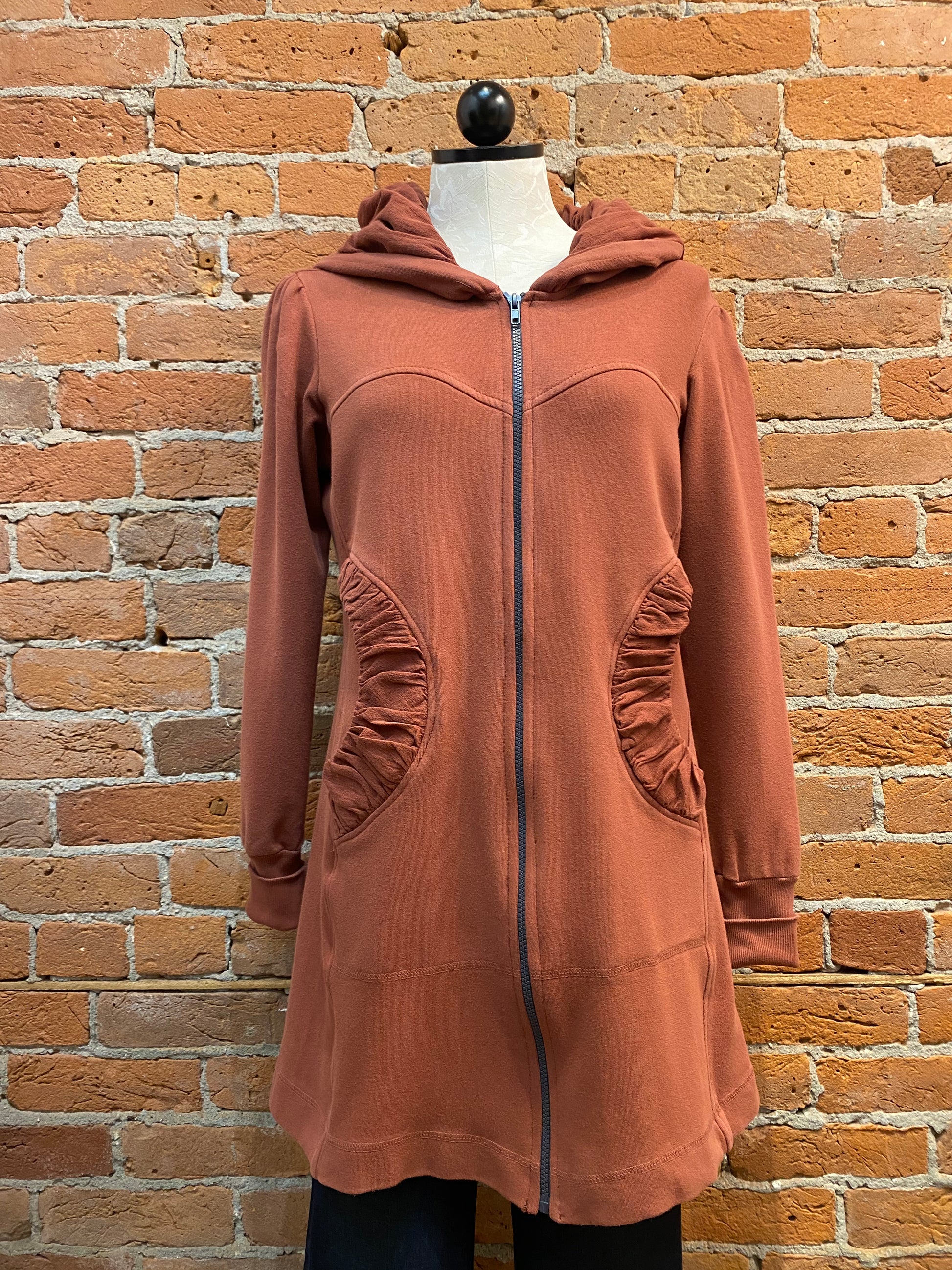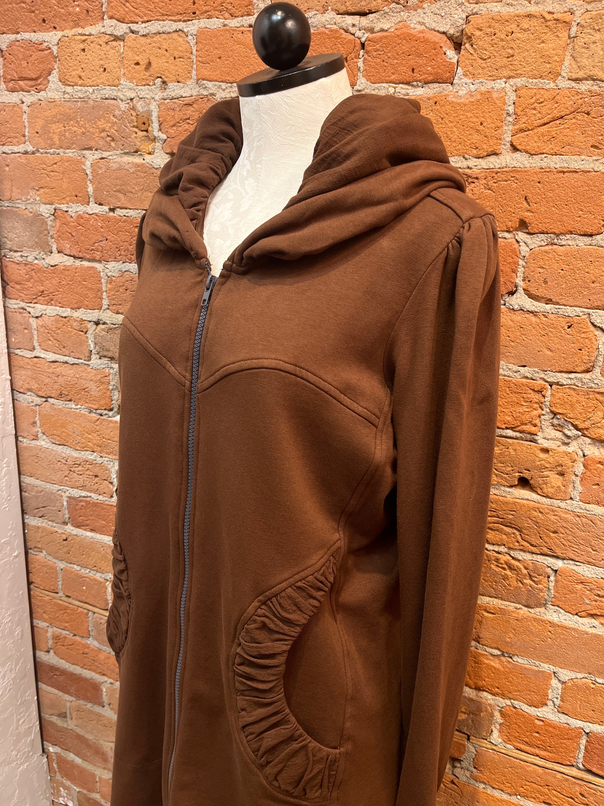 While we have a lot of CMC clothing available in our store, the most popular by far is our stylish hoodie. It’s the perfect year-round layering item over jeans, pants, skirts, or dresses--and can be zipped and worn as a tunic as well! Long, cuffed sleeves, deep pockets, and a nicely shaped silhouette will make this your favorite item for everyday wear. Check out its sister, the CMC hoodie jacket, short zip too!