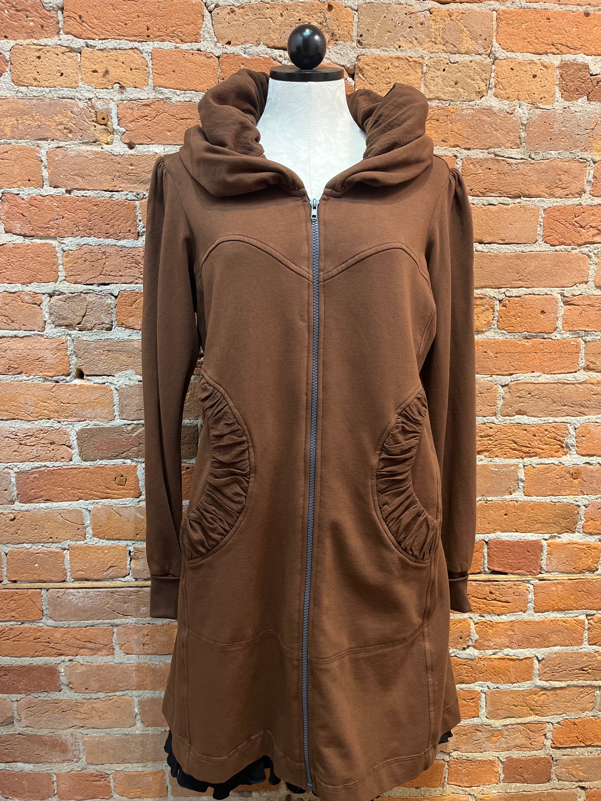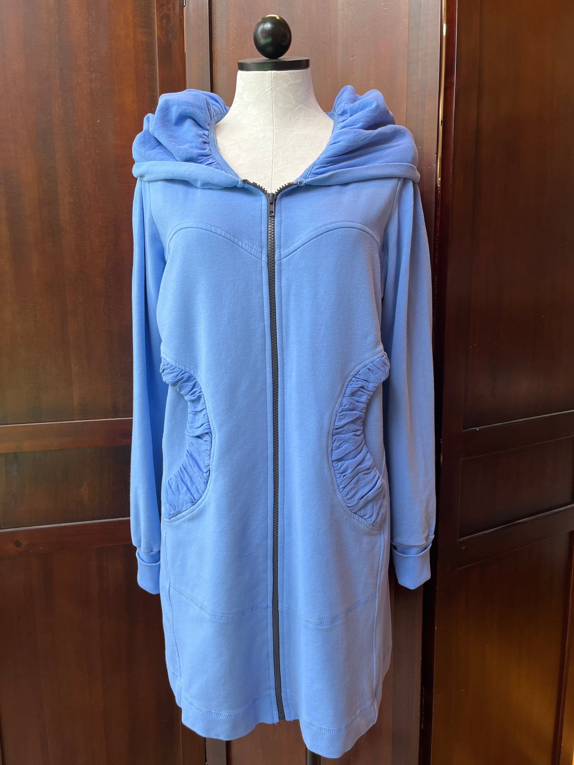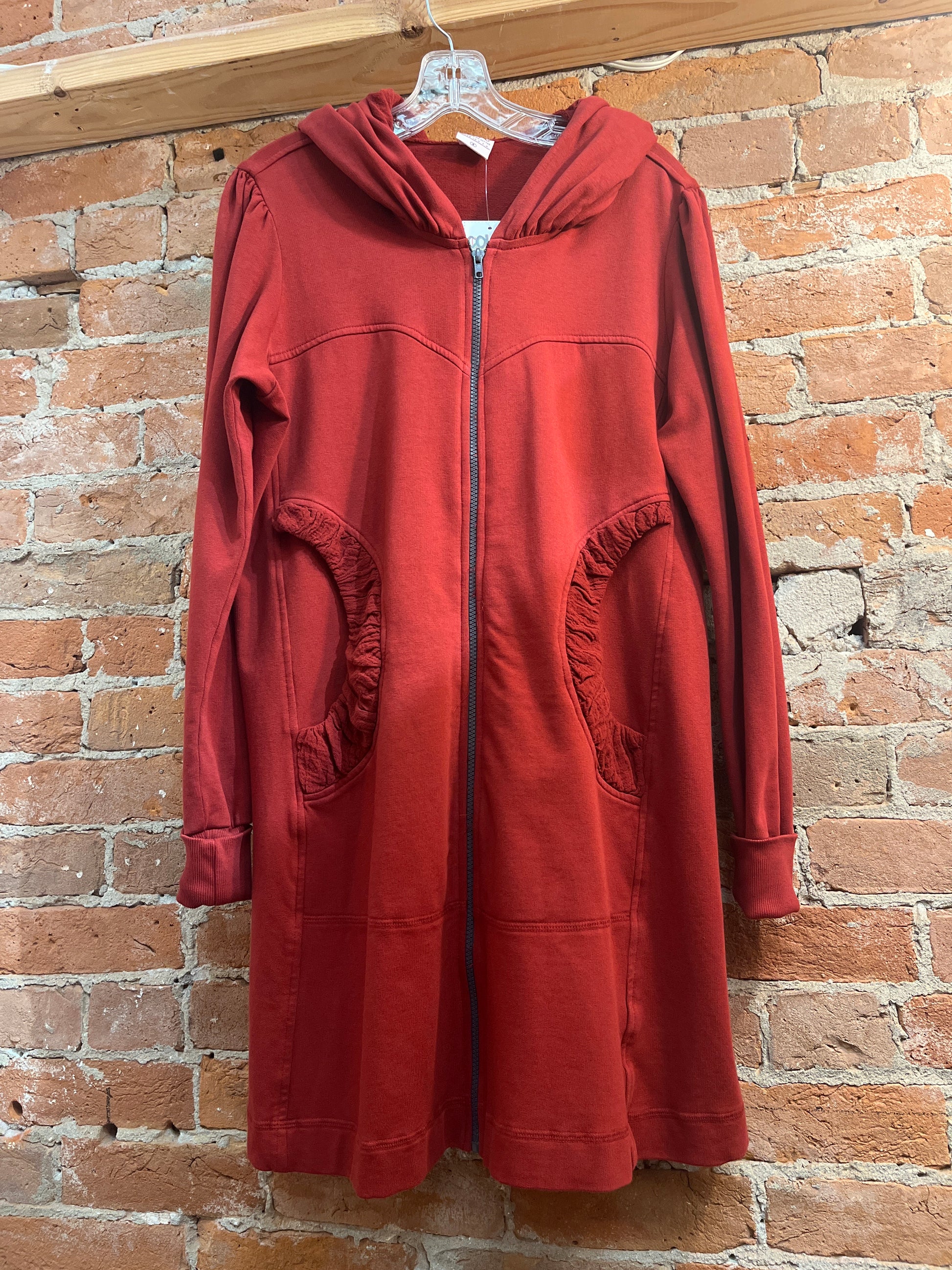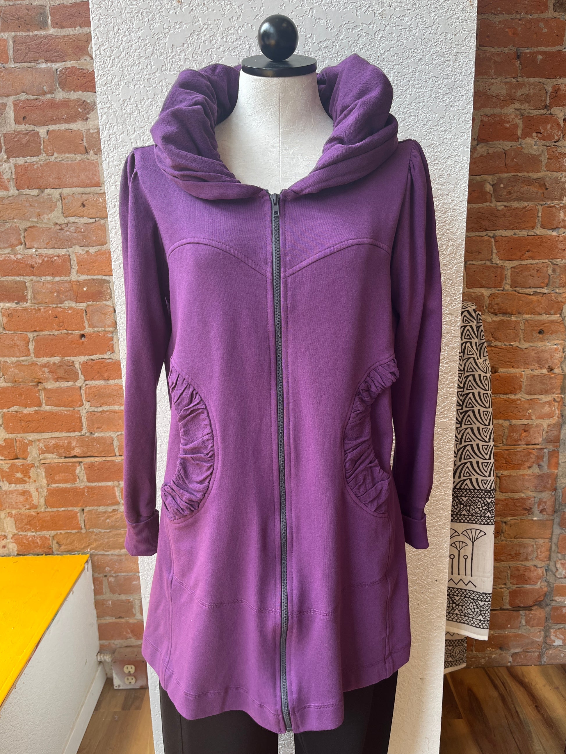 While we have a lot of CMC clothing available in our store, the most popular by far is our stylish hoodie. It’s the perfect year-round layering item over jeans, pants, skirts, or dresses--and can be zipped and worn as a tunic as well! Long, cuffed sleeves, deep pockets, and a nicely shaped silhouette will make this your favorite item for everyday wear. Check out its sister, the CMC hoodie jacket, short zip too!