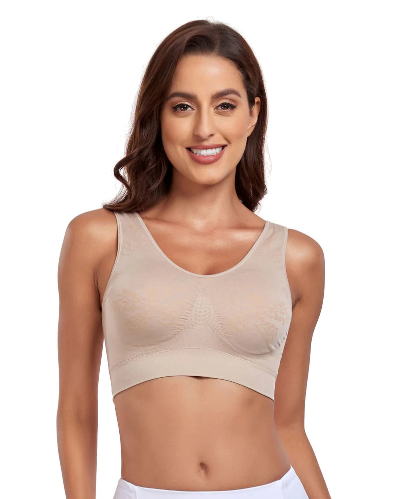 Designed for your comfort, this seamless bra is a comfortable fir for all, but highly recommended by many post-breast cancer patients and oncologists as a replacement for mastectomy bras. The extra wide, no-slip straps ensure maximum support with full coverage soft cups for a flattering fit. The seamless design includes no wires, tags, or hardware so it feels just like a second skin. Our wide-strap soft bra comes in four sizes for a more customized fit that will hug you in all the right places.