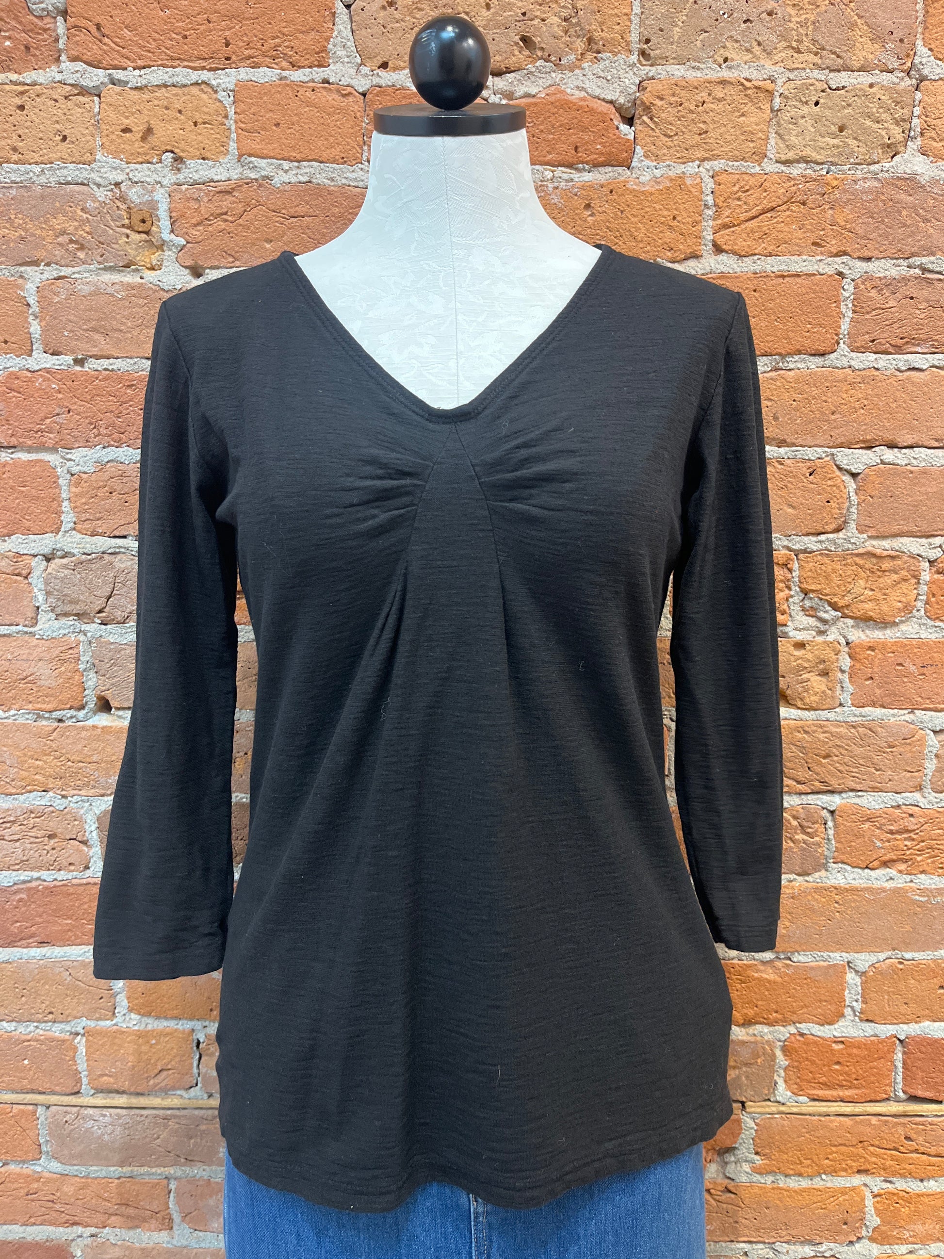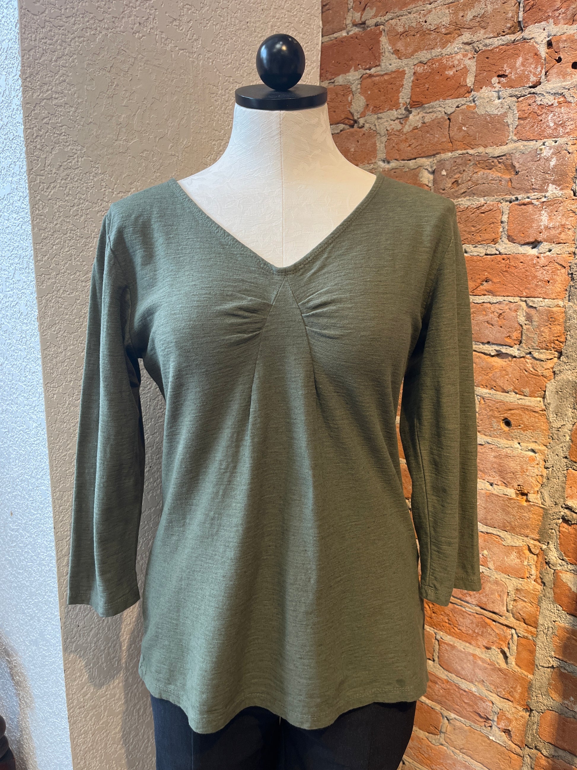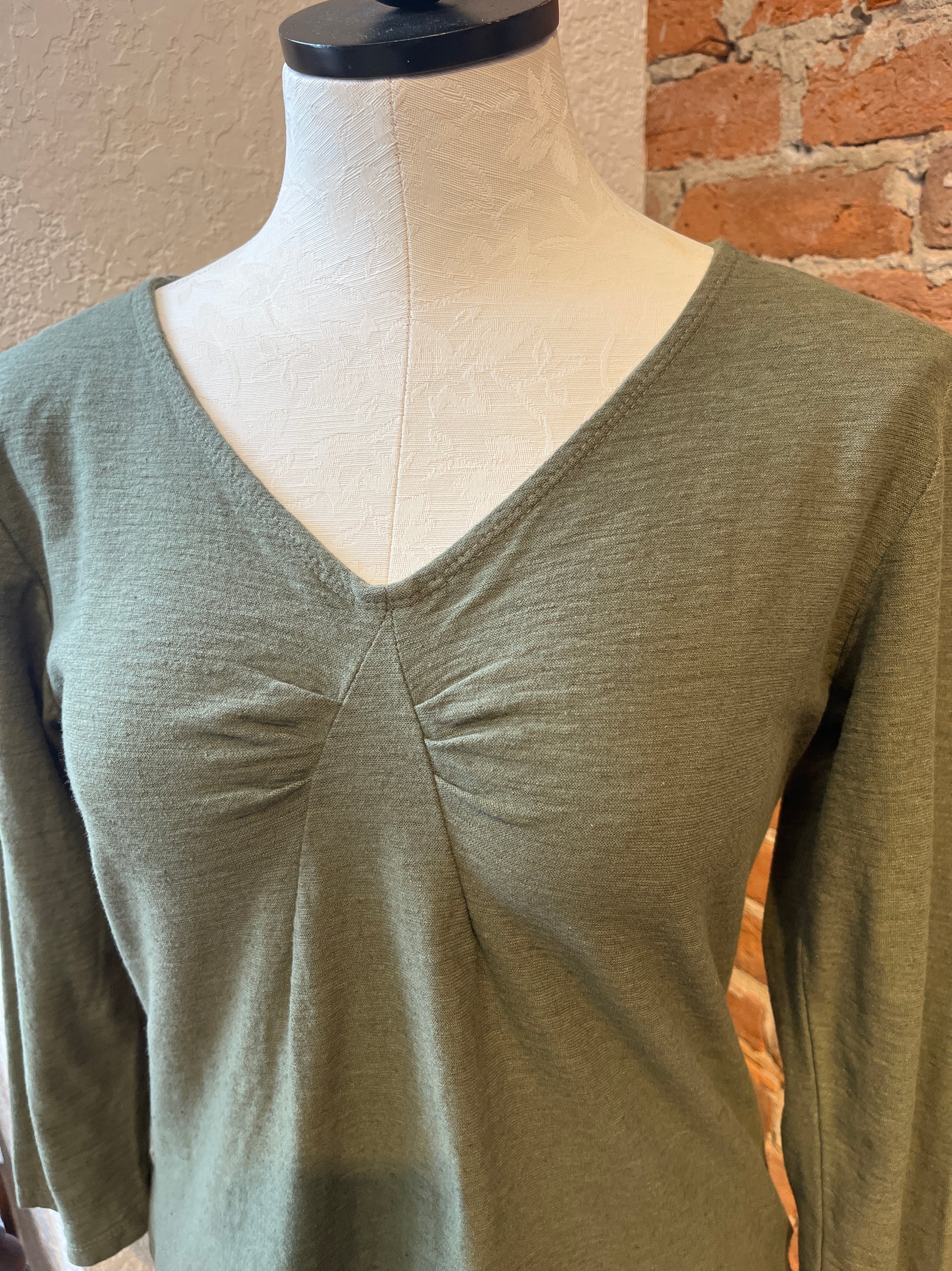 Cut Loose t-shirt, tuck-front 3/4 sleeve linen blend