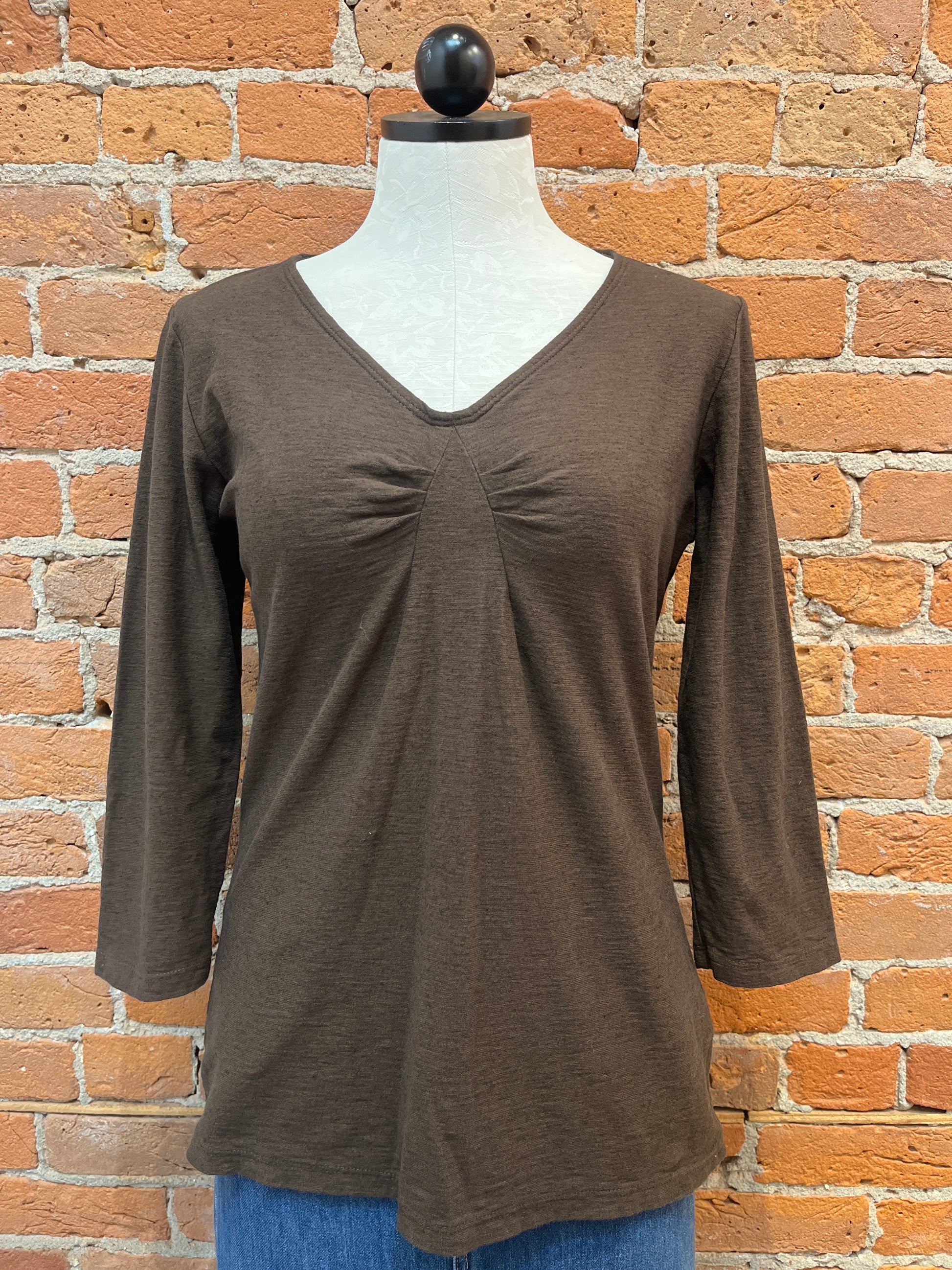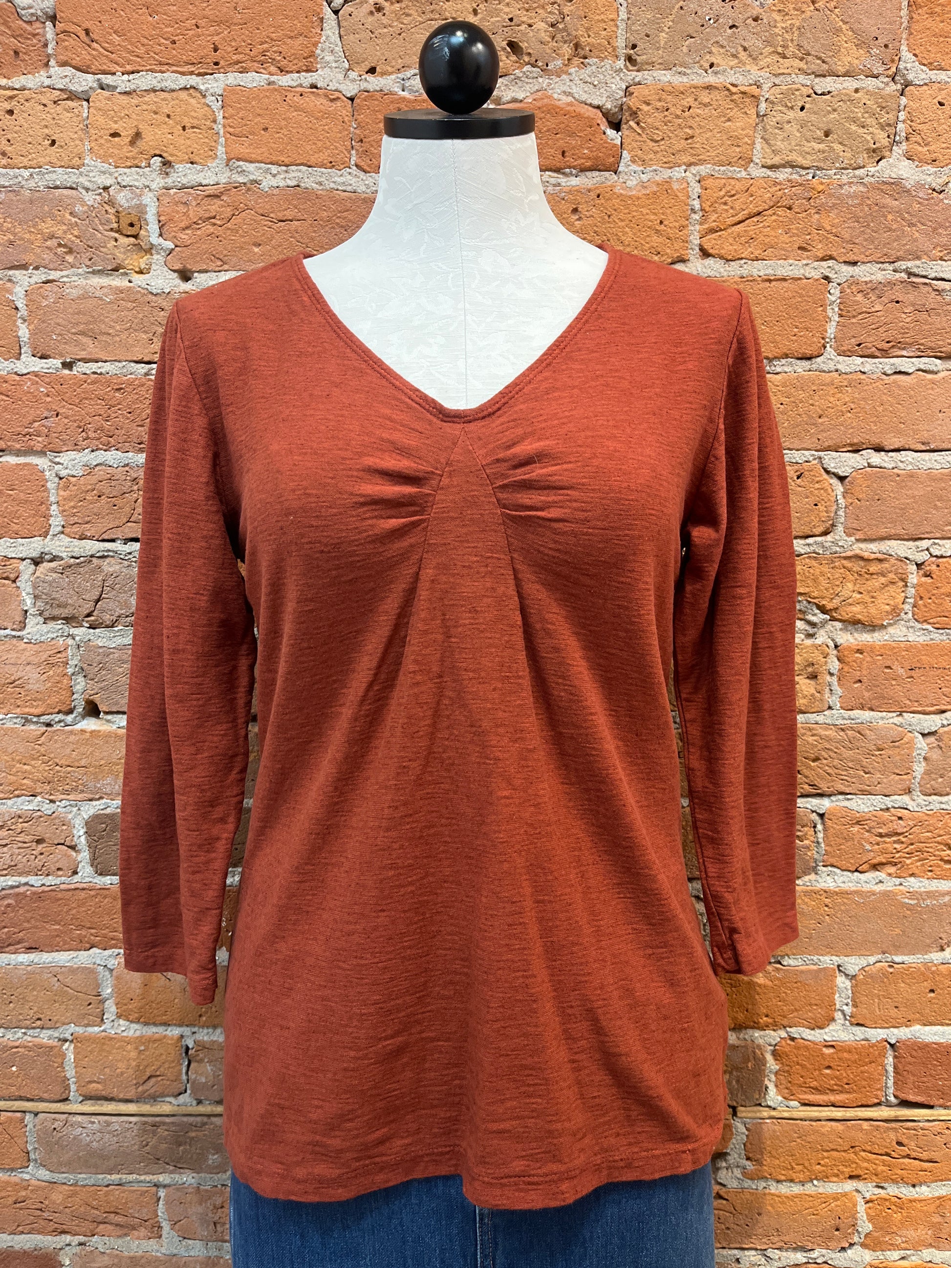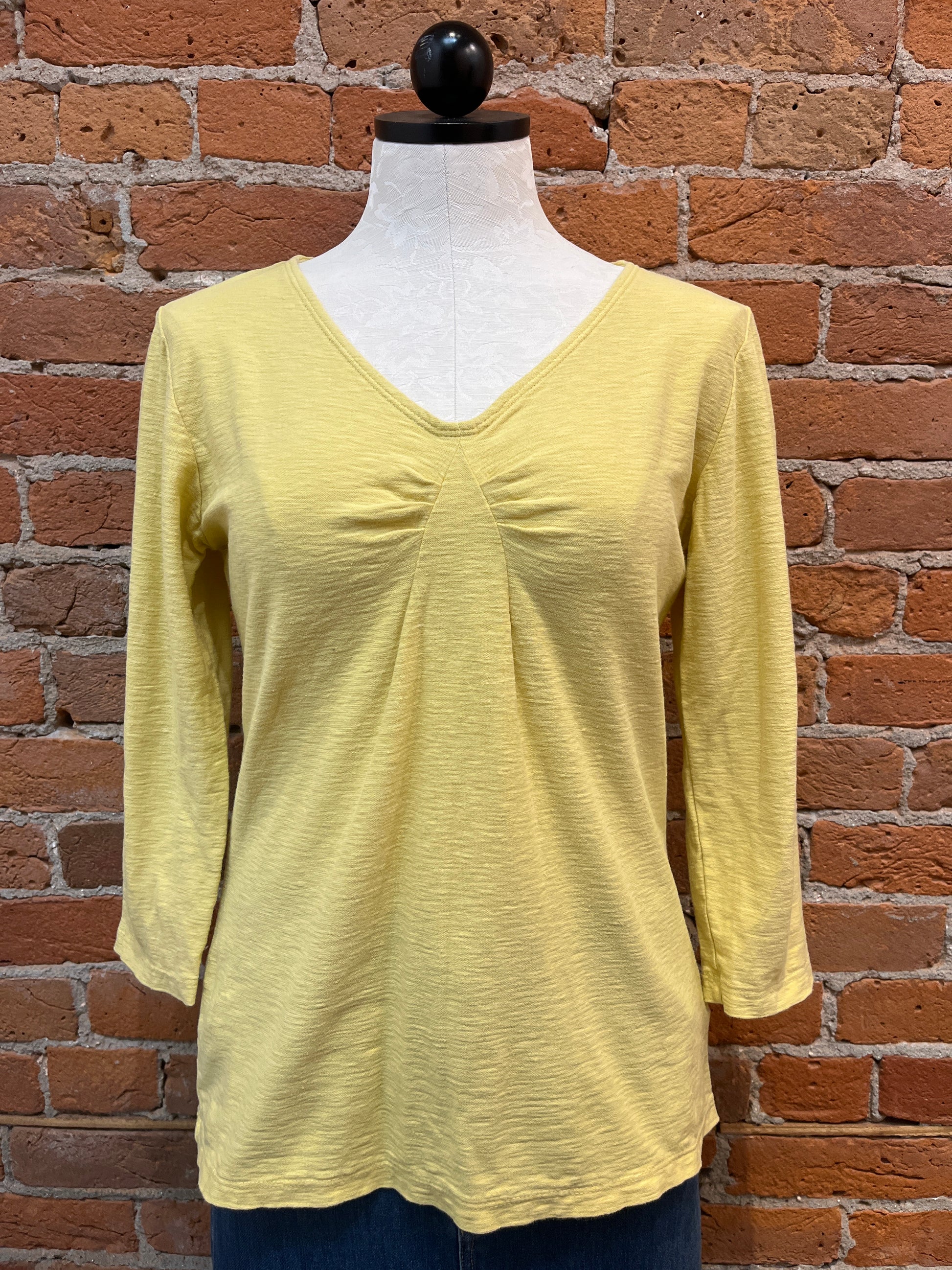 Cut Loose t-shirt, tuck-front 3/4 sleeve linen blend