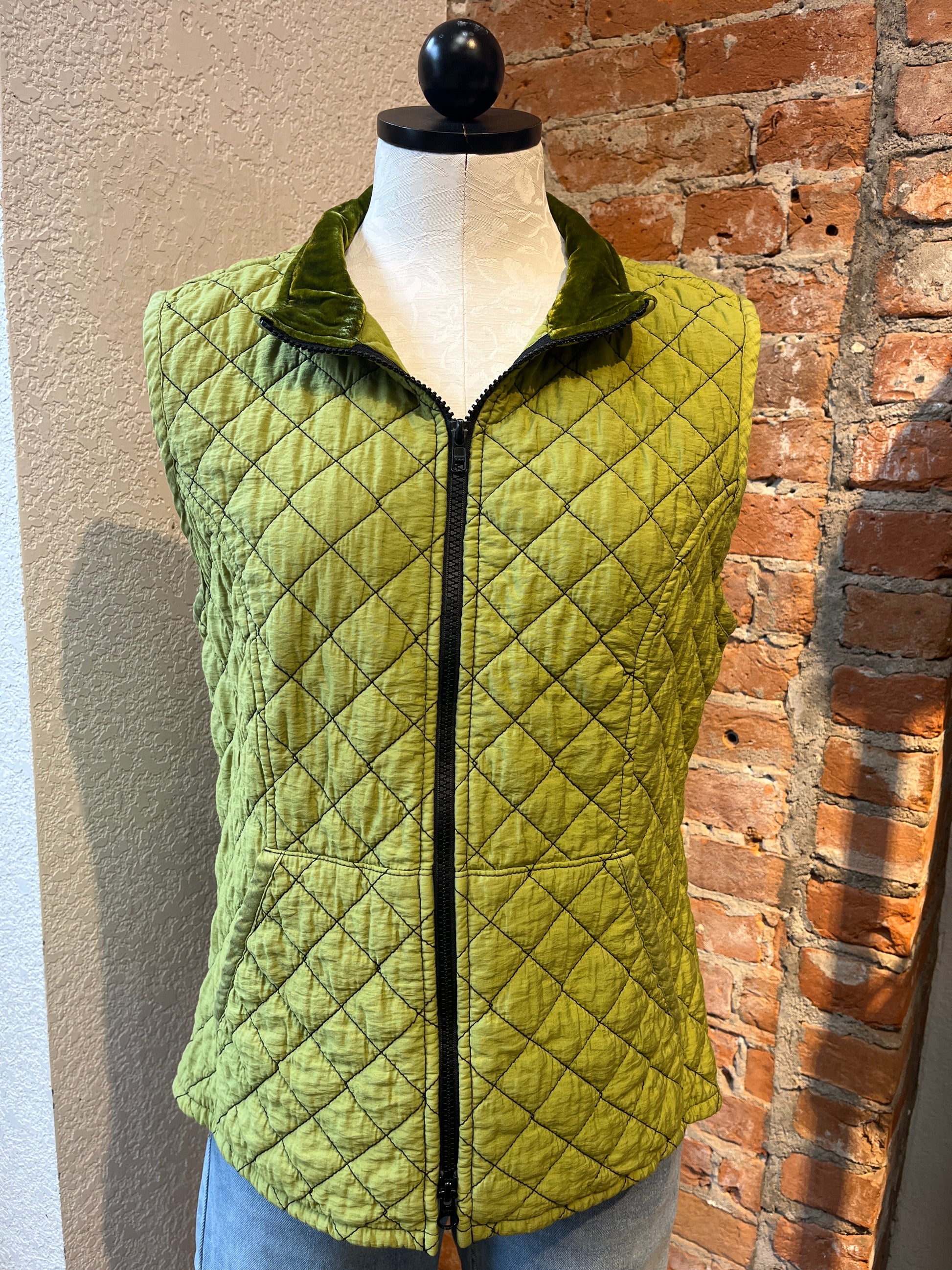 Cut Loose vest, quilted velvet trim