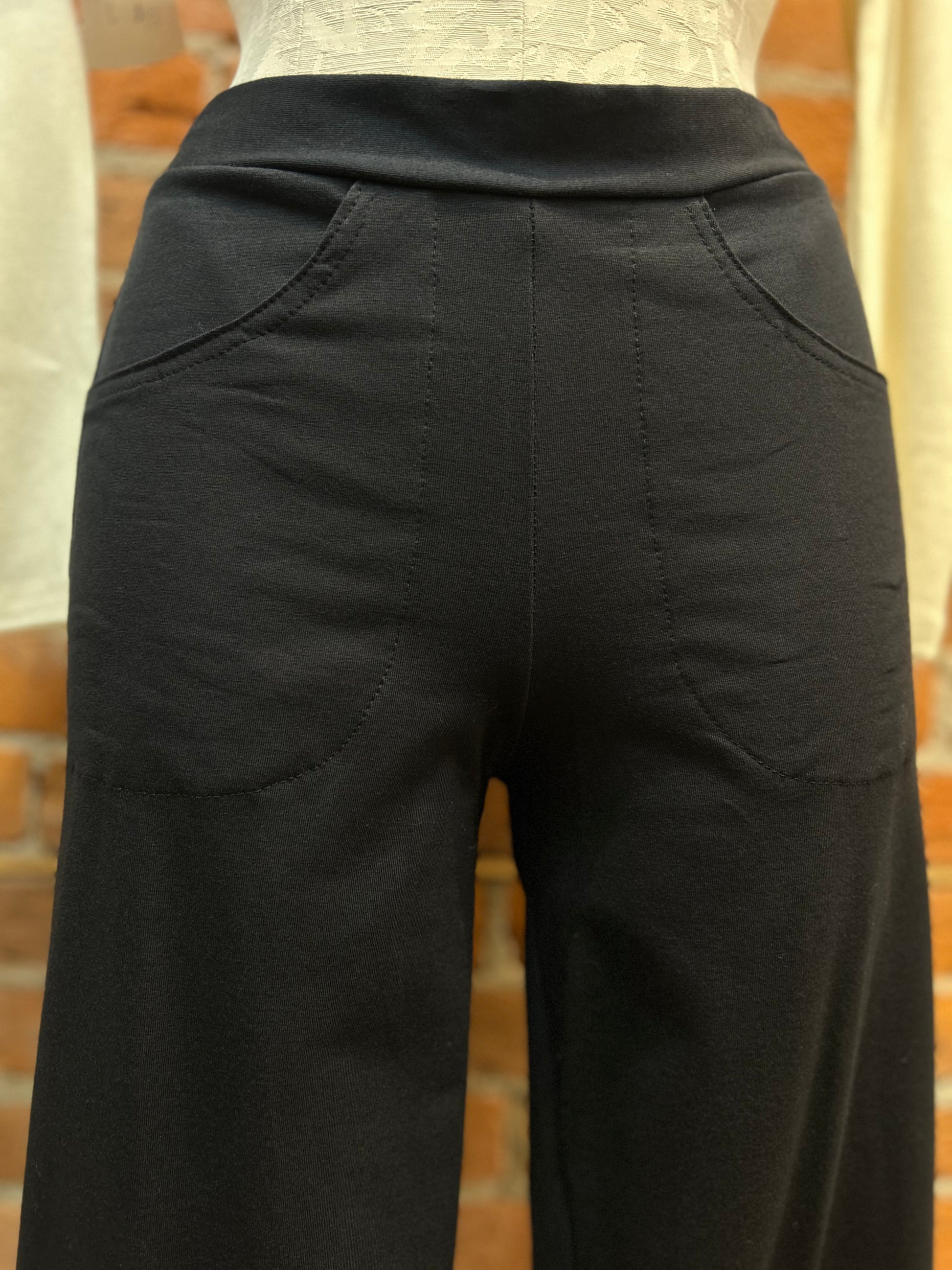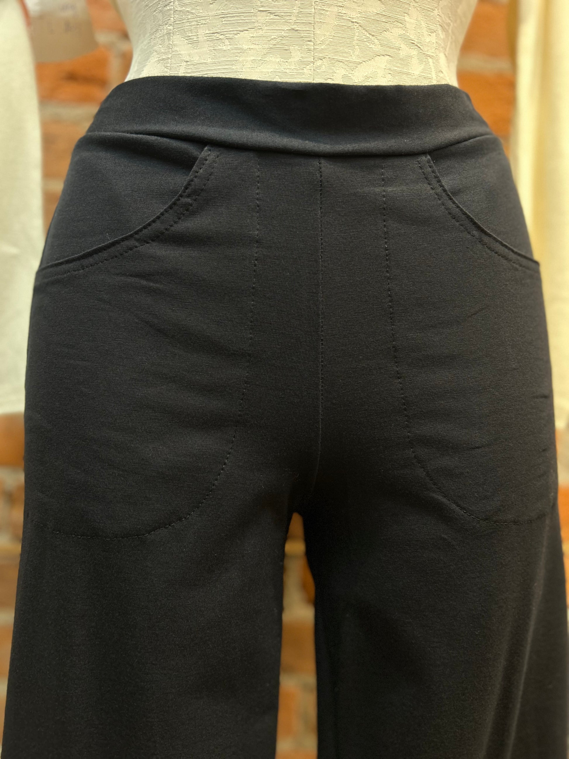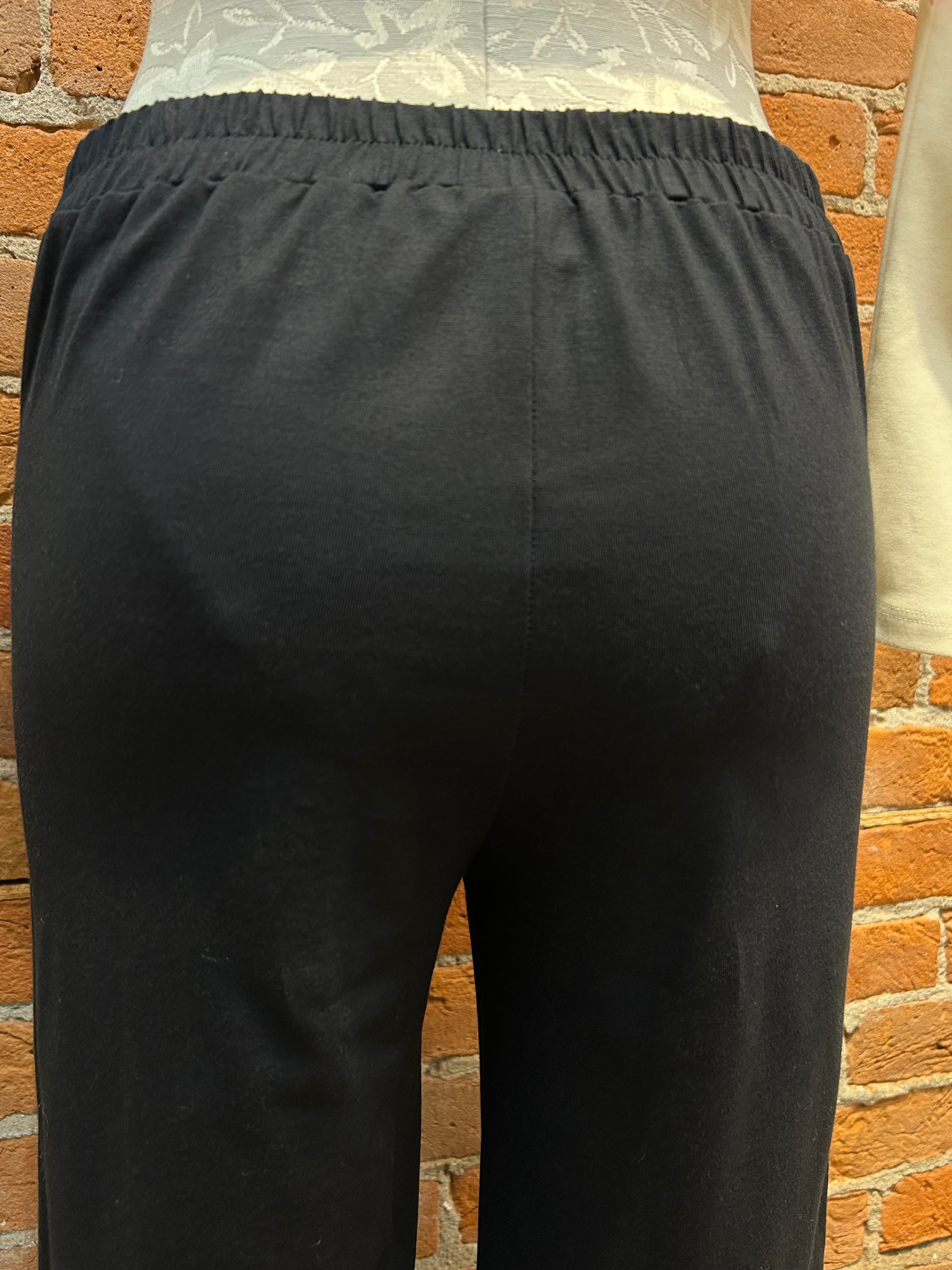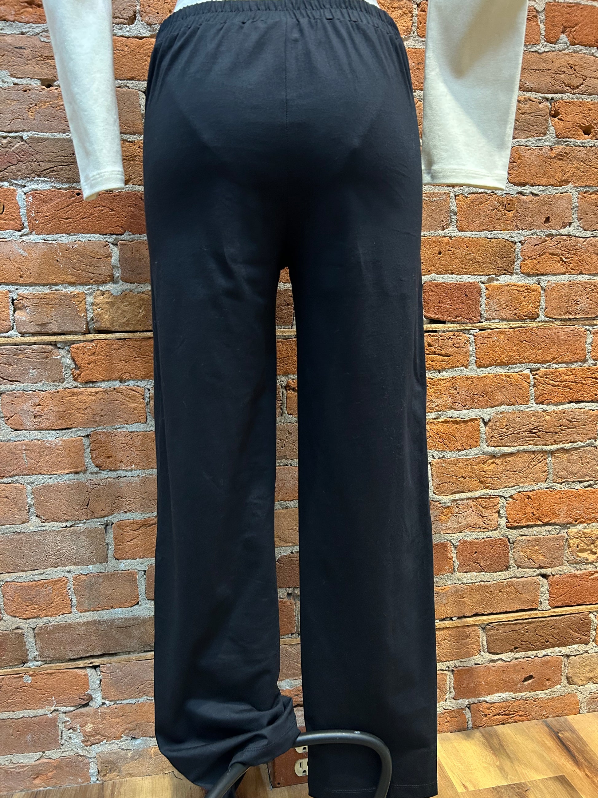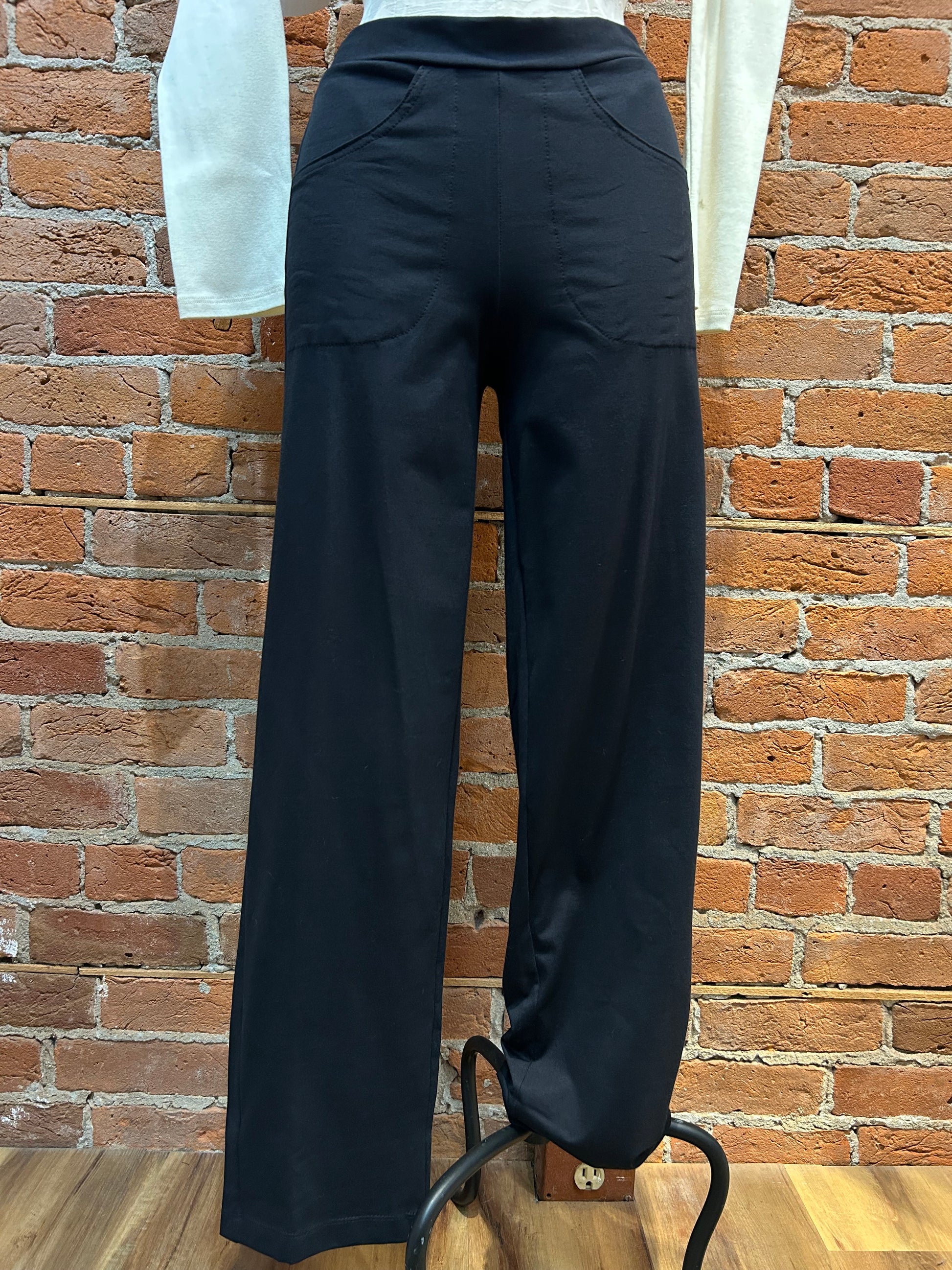 Product description: easy pull on waistband, front pockets, full-length narrow straight leg
