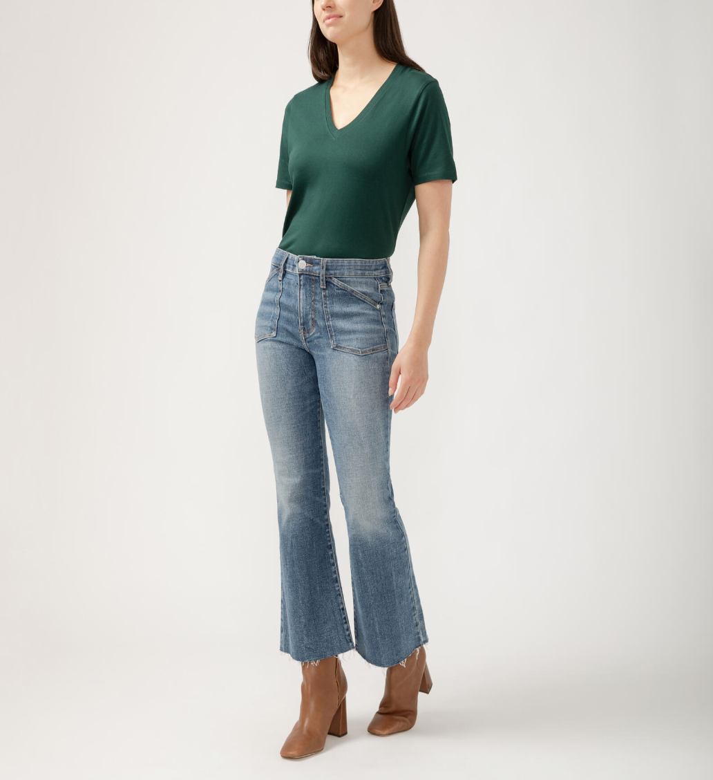 Sizing: The Kait kick flare has a 28" inseam, 10" front mid-rise, 14.5" back rise, measures 15.75" at the knee, with a 21"" Leg Opening. See Jag’s fit guide image for additional measurements to find the right fit for you.