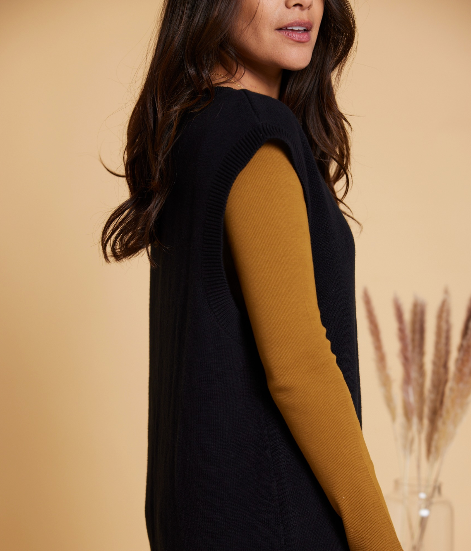 We are head over heels for the Edna Sweater Dress for its cute fit & overall simplicity. It's like your cute sweater vest kept growing into this adorable adult version.