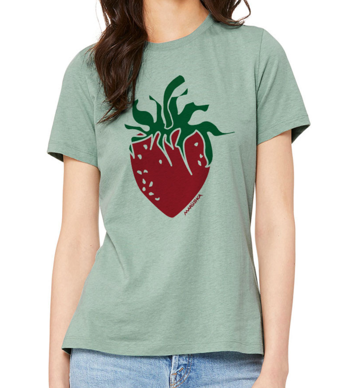 Marushka t-shirt, relaxed crewneck short-sleeve Strawberry on Seaglass