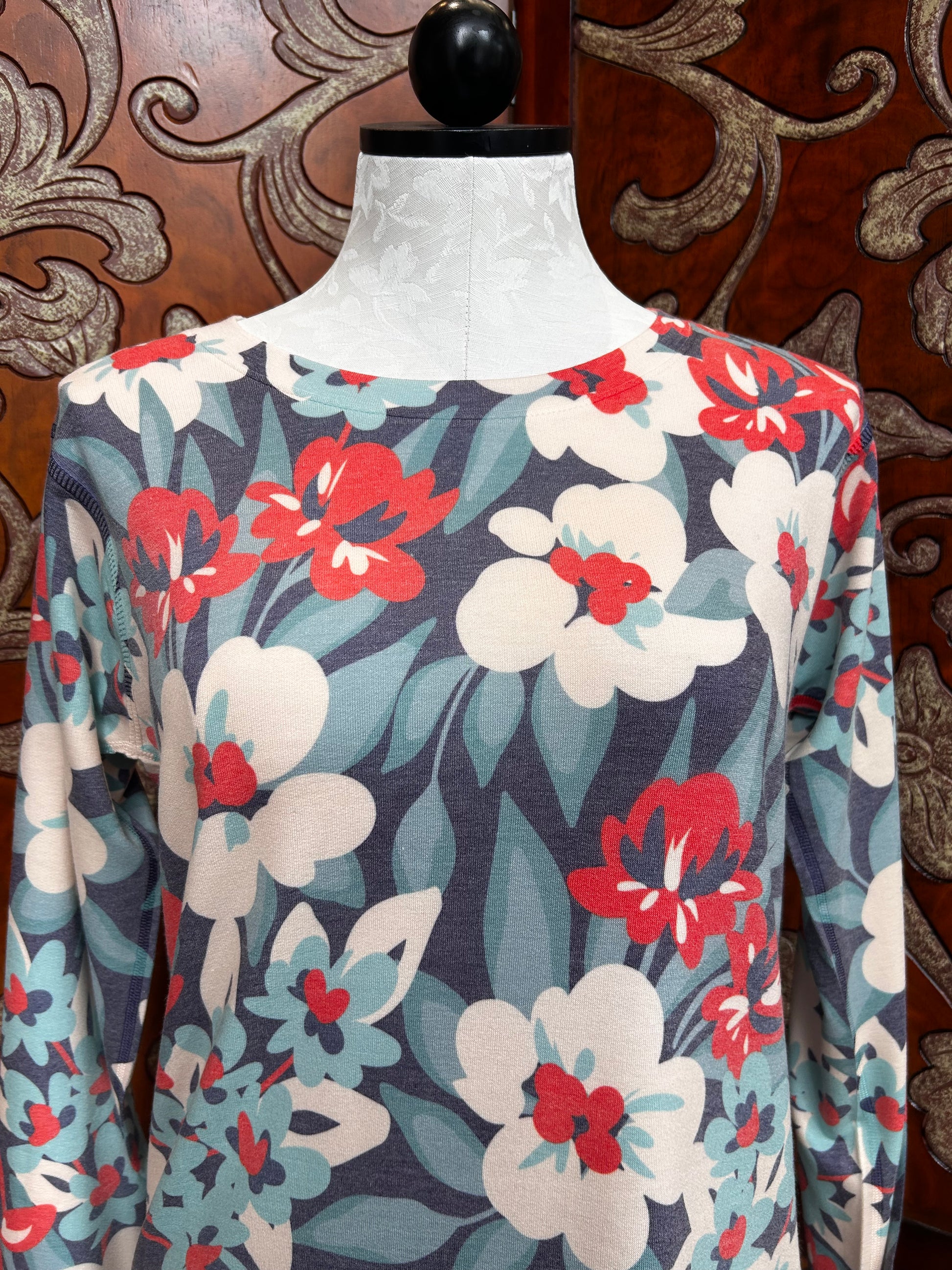 Product features: boat neck, long sleeve, curved hem is slightly longer on front/back than sides, hip length on most