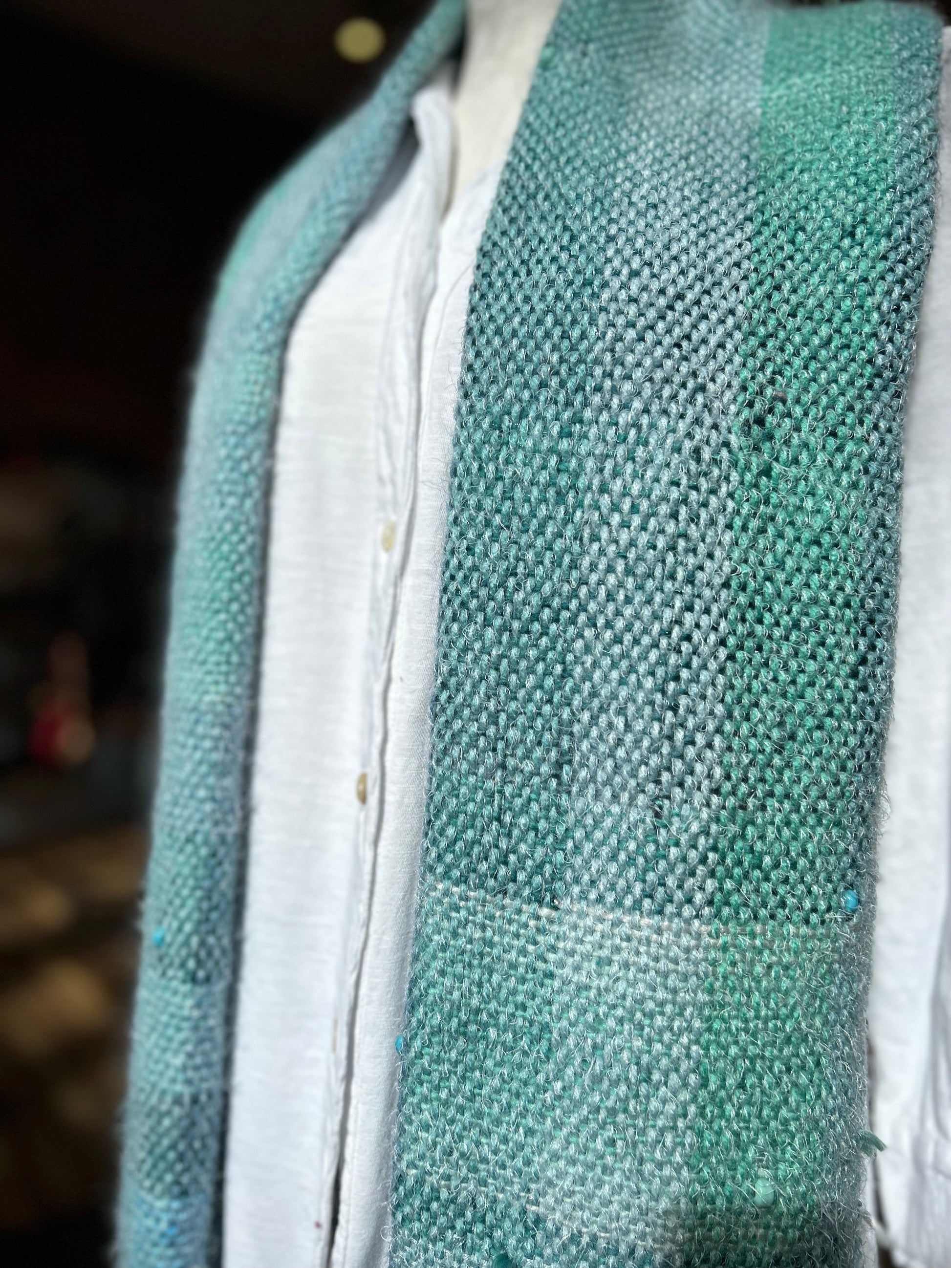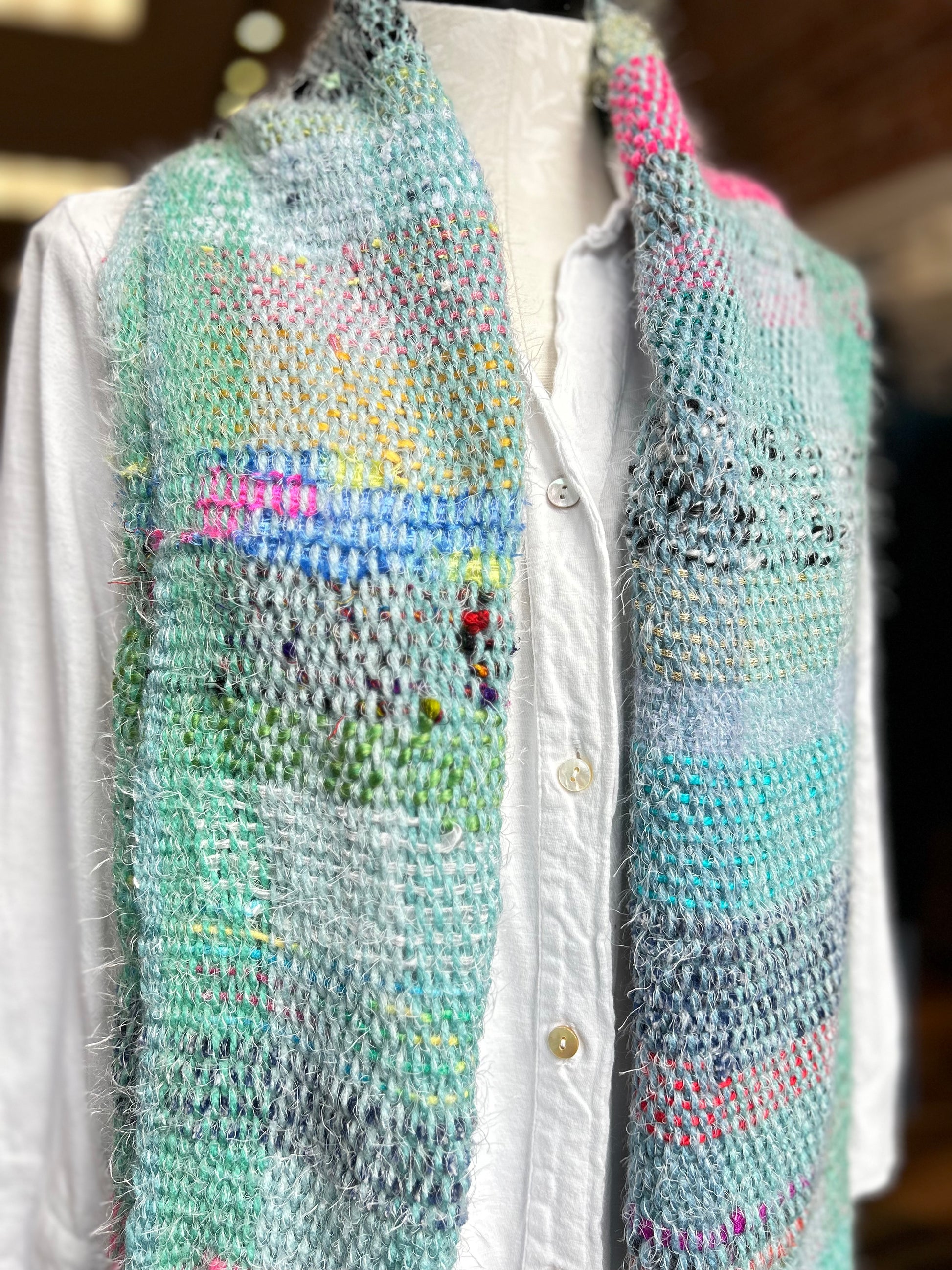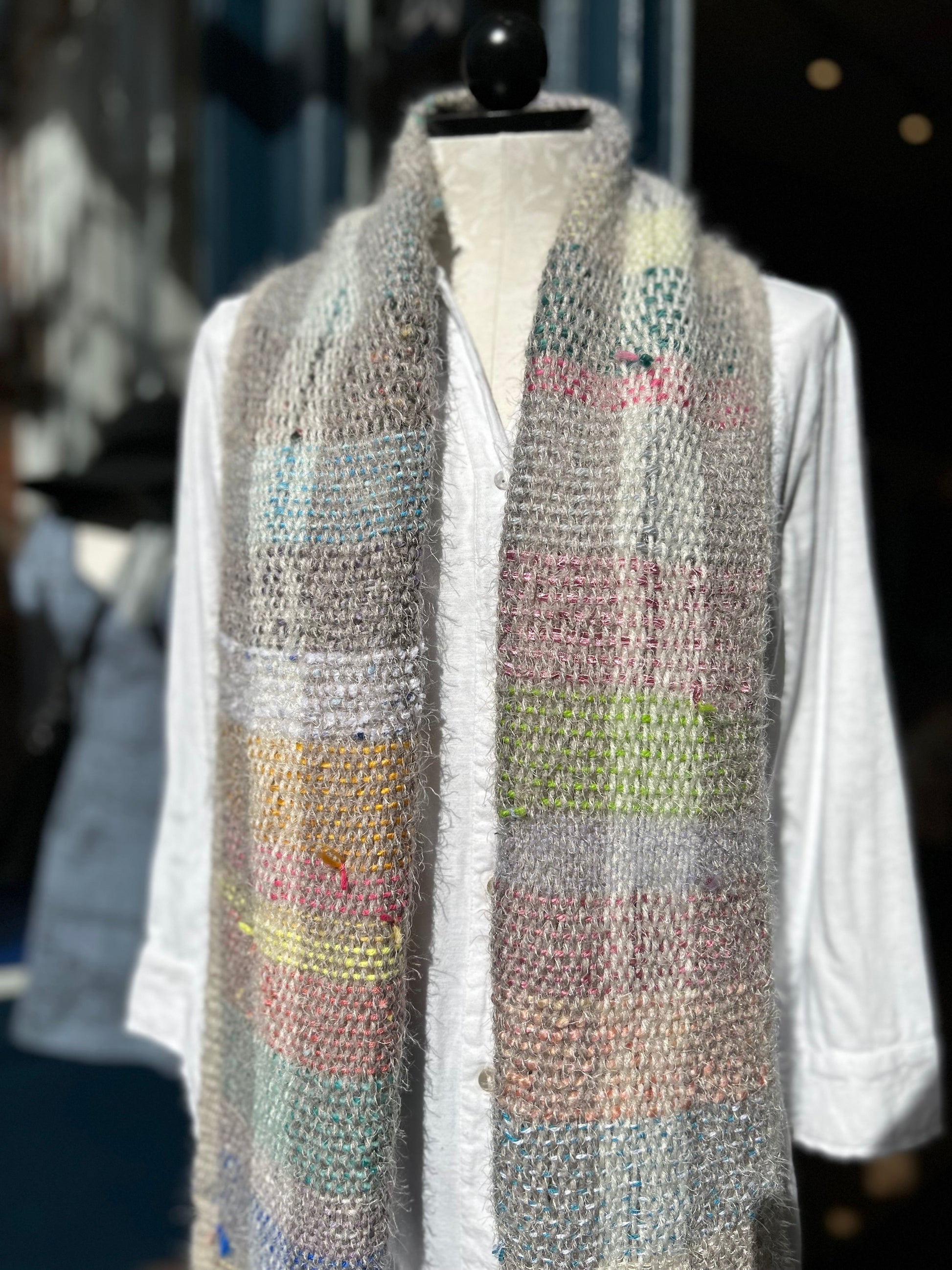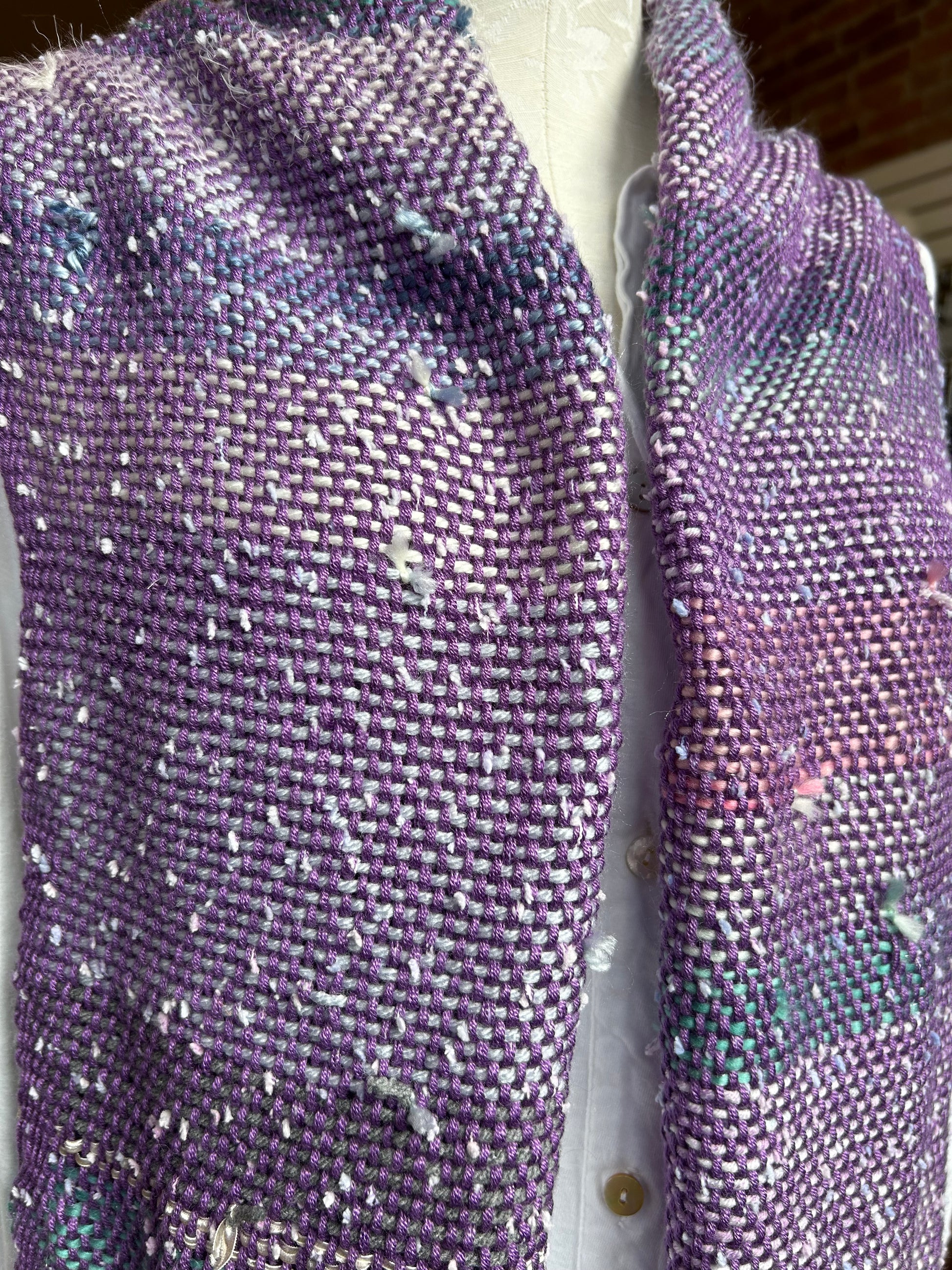 Natalie Reid scarf, wide hand-woven fiber art