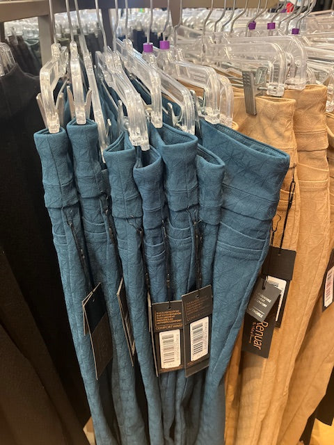 Colors: Lagoon, Tan (Please view the photos to see those taken in the store: the close up of the tan shows the texture, while the photo of the pants hanging on the rack are truer to color than the photos from Renuar.)